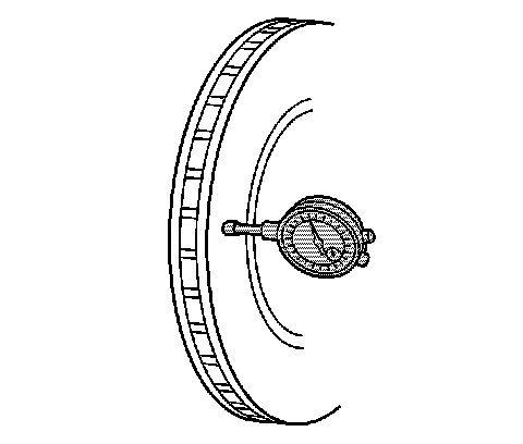 10. Mount a dial indicator, J 8001 or equivalent, and position the indicator button so it contacts the brake rotor at a 90 degree angle, approximately 13 mm (0.5 inch) from the rotor's outer edge.