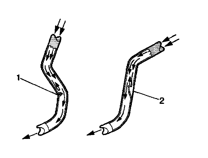 6. Squeeze the flexible brake hoses with firm finger pressure to check for soft spots (2), indicating an internal restriction. Check the entire length of each flexible brake hose.