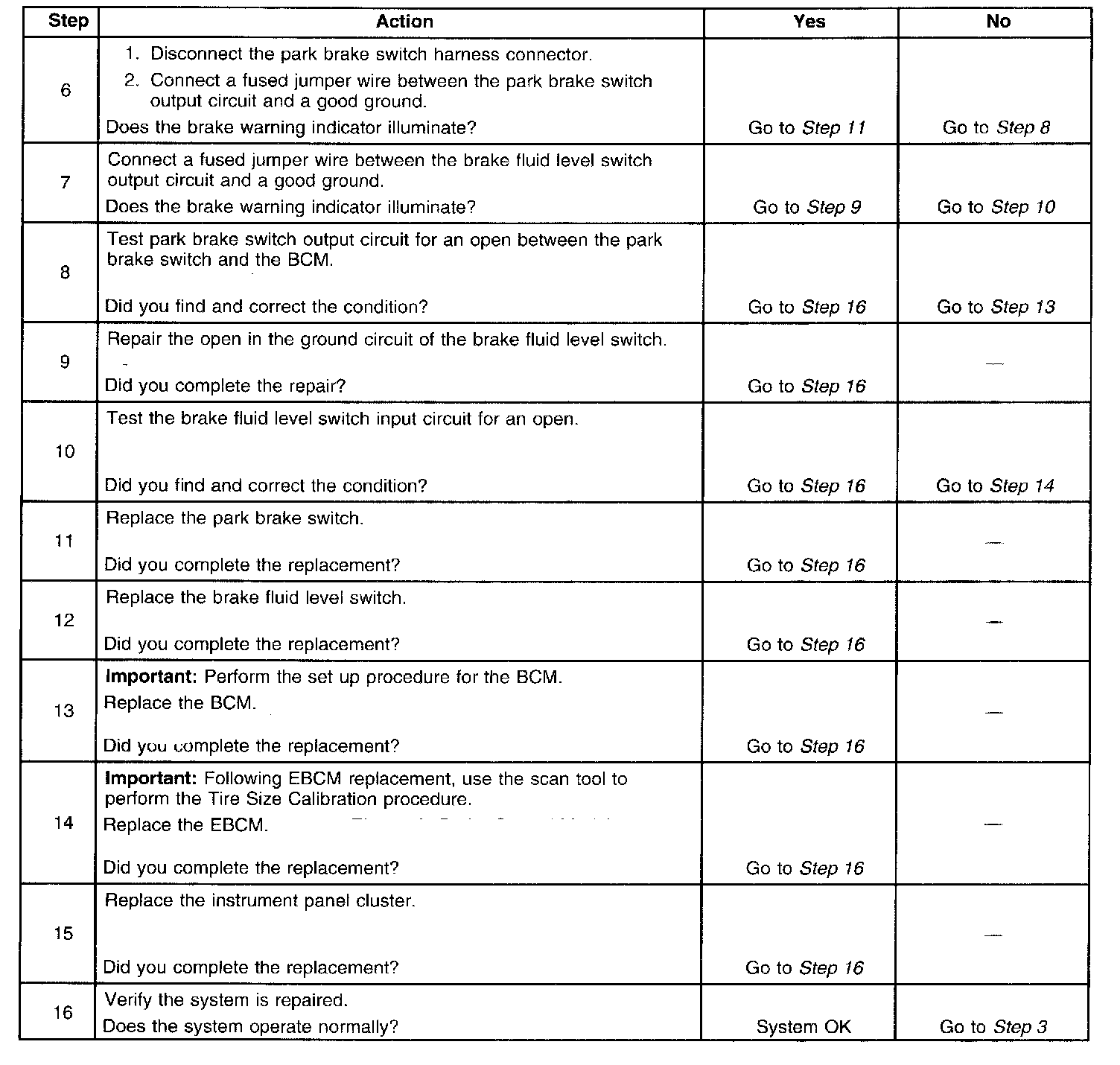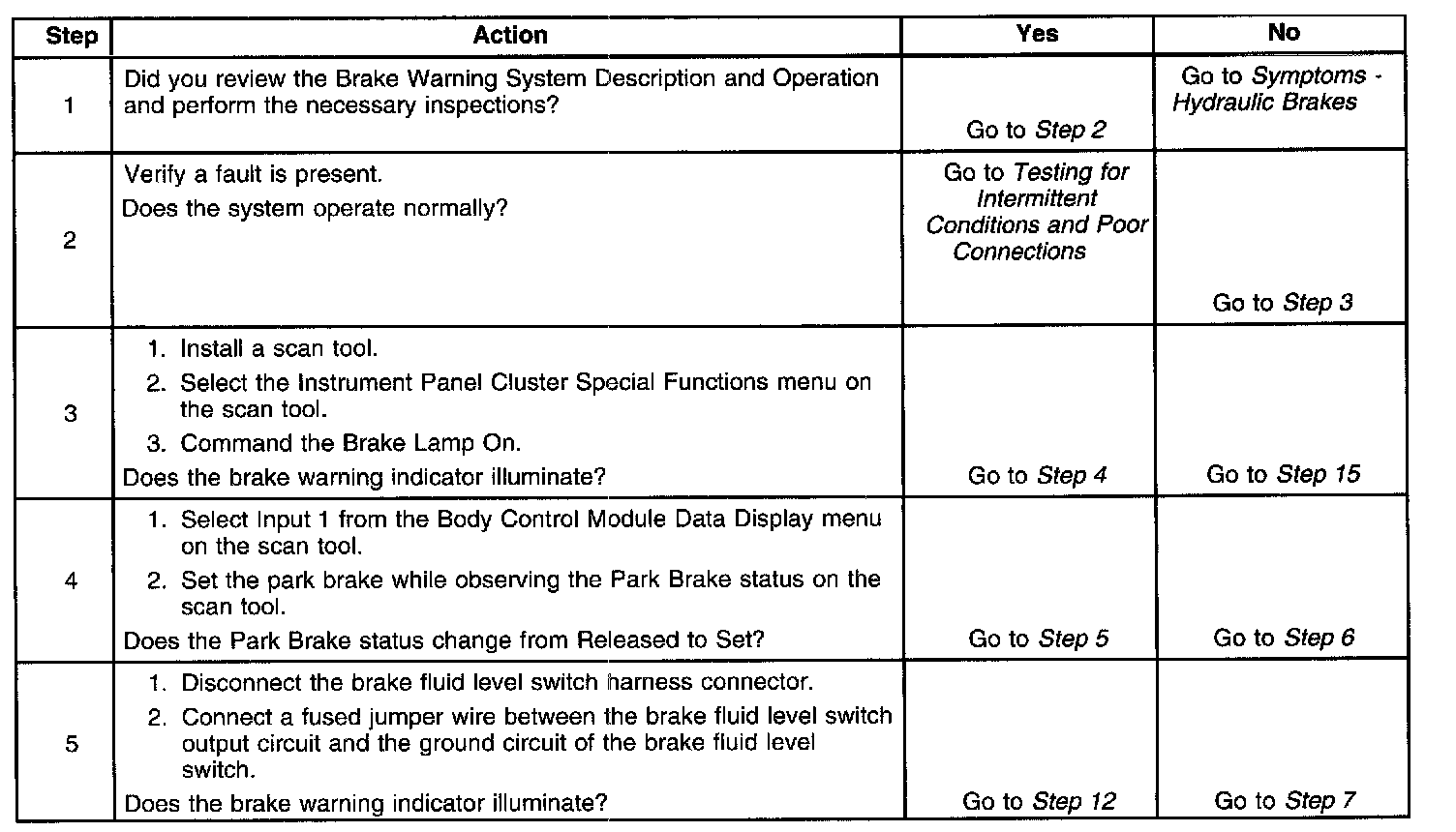 Brake Warning Indicator Inoperative