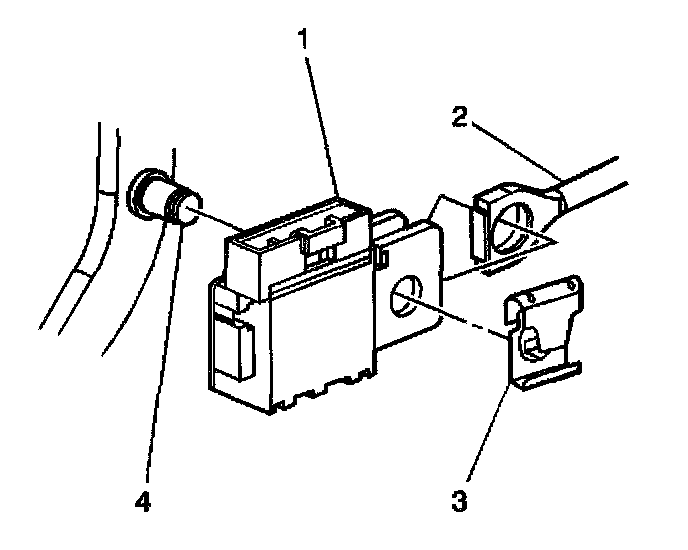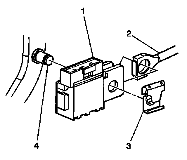4. Install the pushrod retainer (3) to the brake pedal pin (4). The retainer will snap into place.
