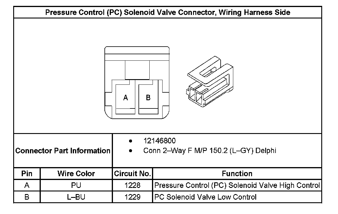 Pressure Control (PC) Solenoid Valve Connector, Wiring Harness Side: