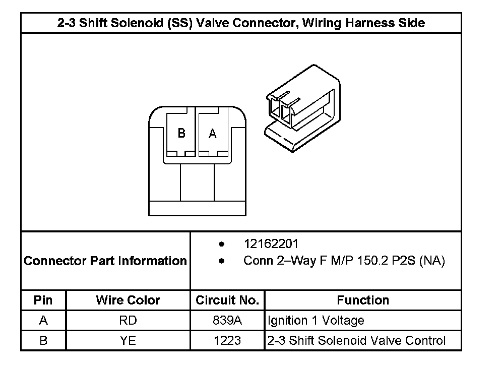 2-3 Shift Solenoid (SS) Valve Connector, Wiring Harness Side: