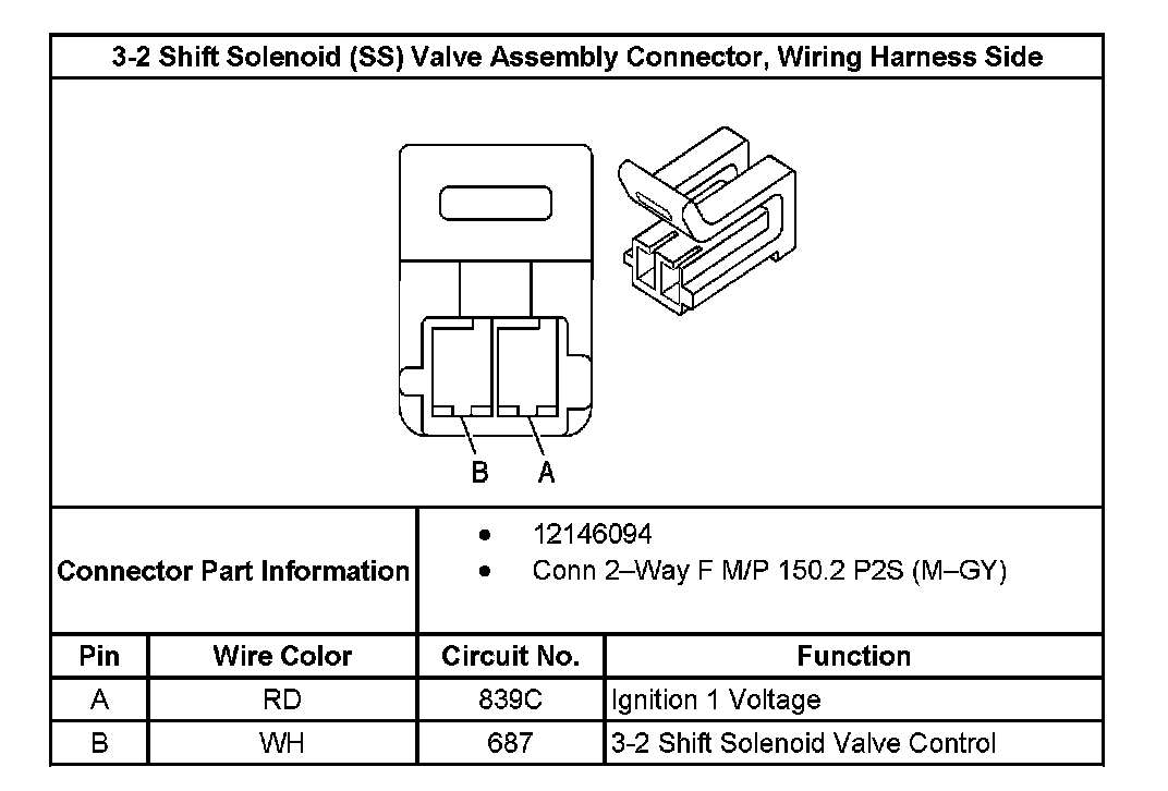 3-2 Shift Solenoid (SS) Valve Connector, Wiring Harness Side: