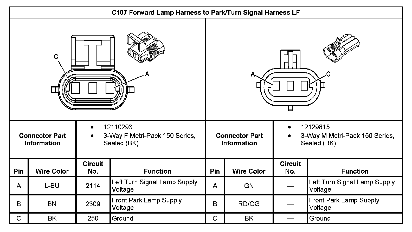 C107 Forward Lamp Harness To Park/Turn Signal Harness LF: