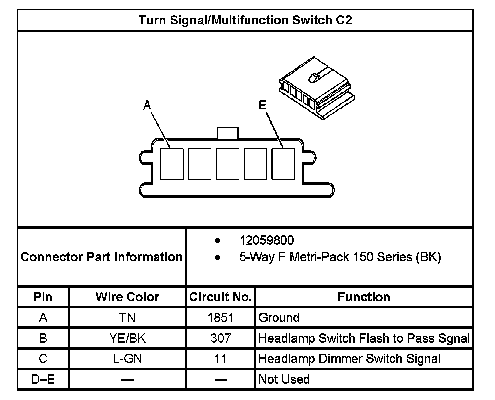 Turn Signal/Multifunction Switch C2: