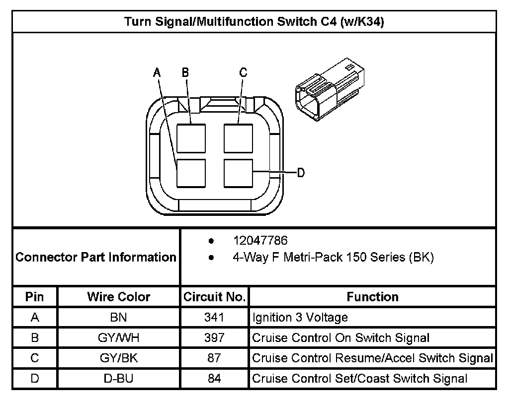 Turn Signal/Multifunction Switch C4 (with RPO Code K34):