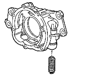 The internal parts of the oil pump assembly are not serviced separately, excluding the spring. If the oil pump components are worn or damaged, replace the oil pump as an assembly.