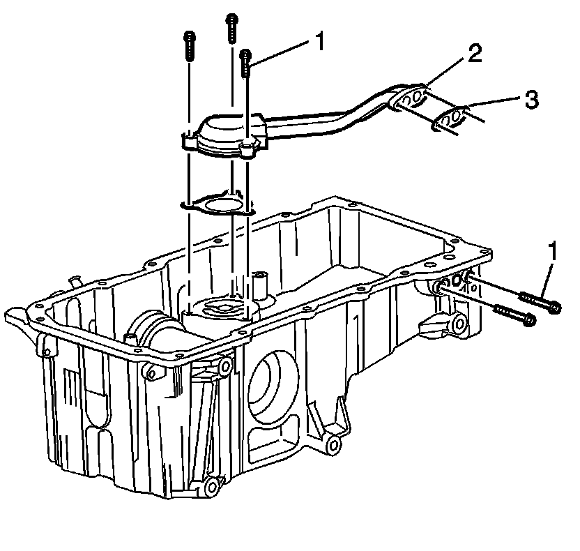 4. Install the oil transfer tube (2), gaskets (3) and bolts (1).