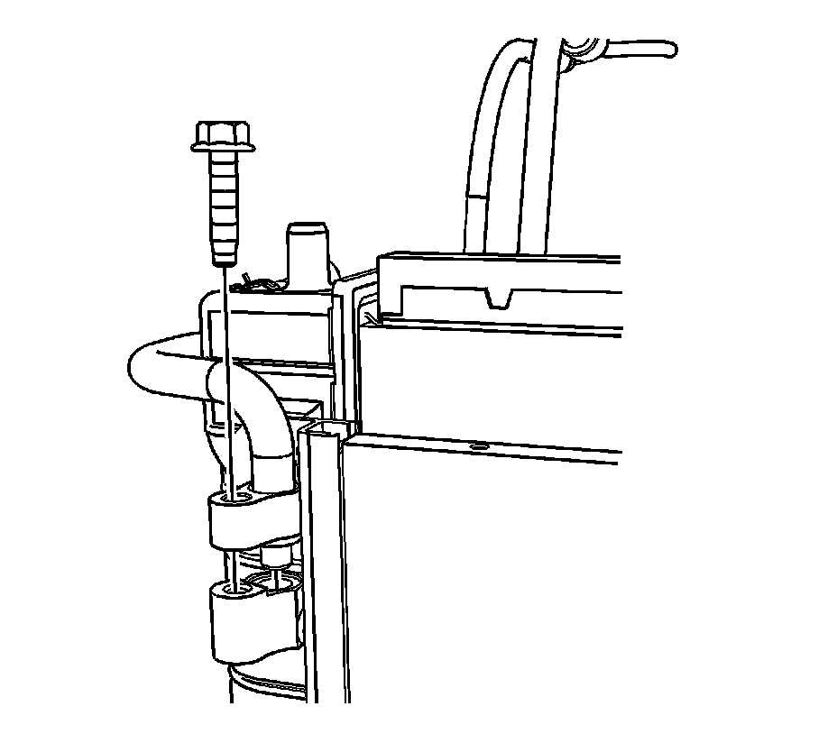 14. Remove the surge tank hose from the radiator.