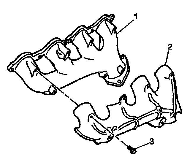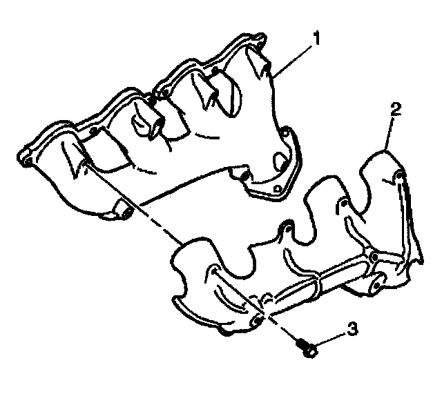 5. Remove the heat shield bolts (3) and shield (2) from the exhaust manifold (1).