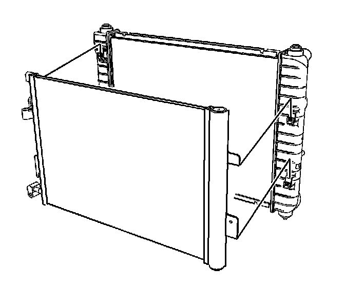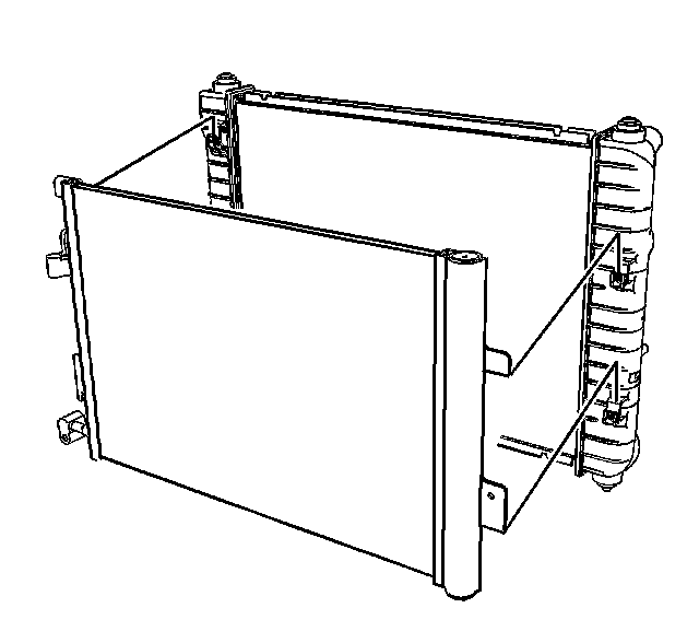 3. Lower the A/C condenser to secure the A/C condenser tabs into the radiator slots.