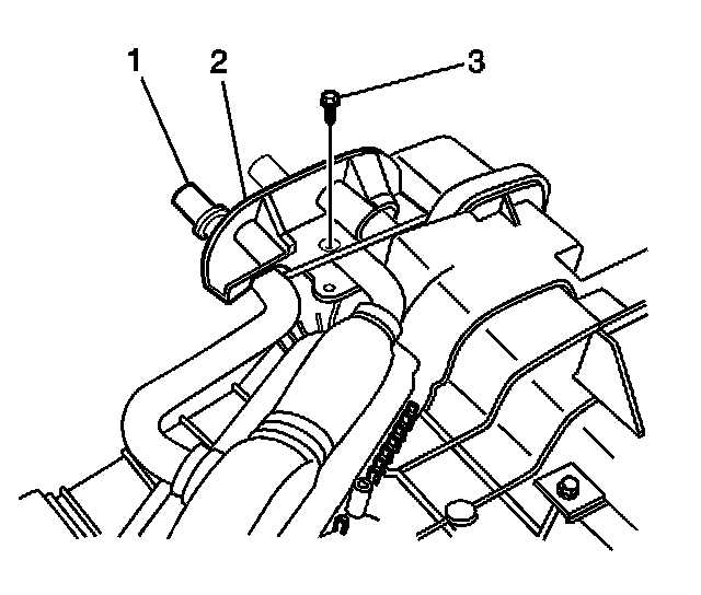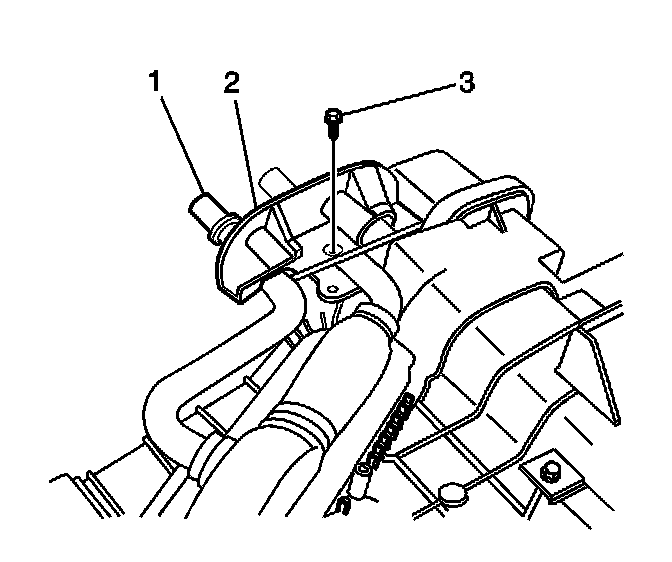 2. Remove the heater core pipes clamp screw (3).