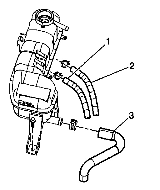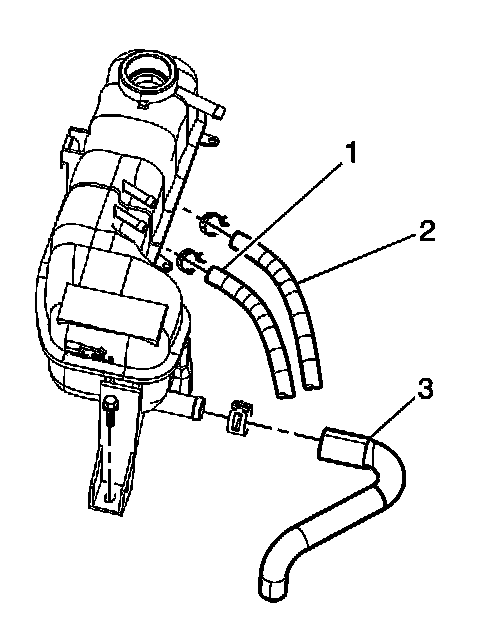 6. Install the heater inlet hose (3) to the surge tank.