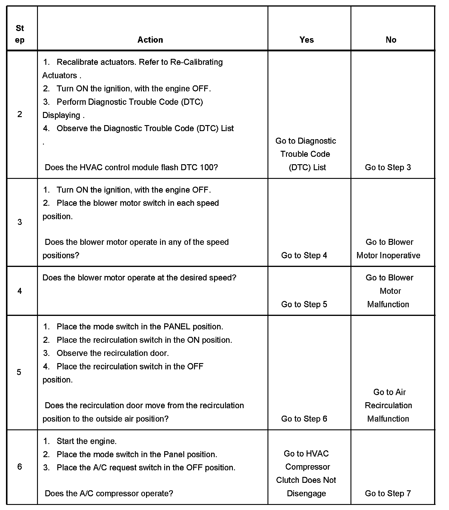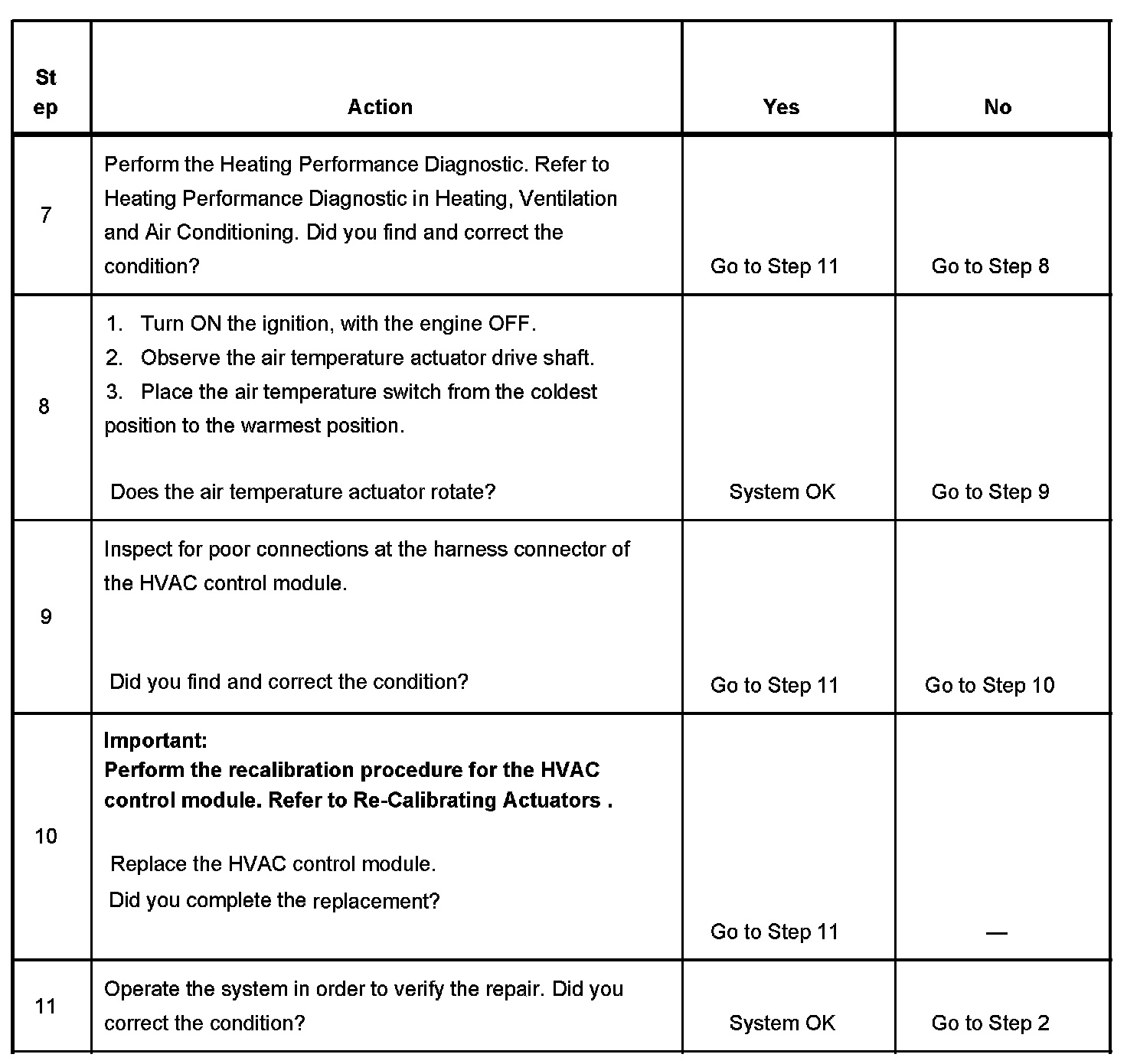 The numbers below refer to the step numbers on the diagnostic table.