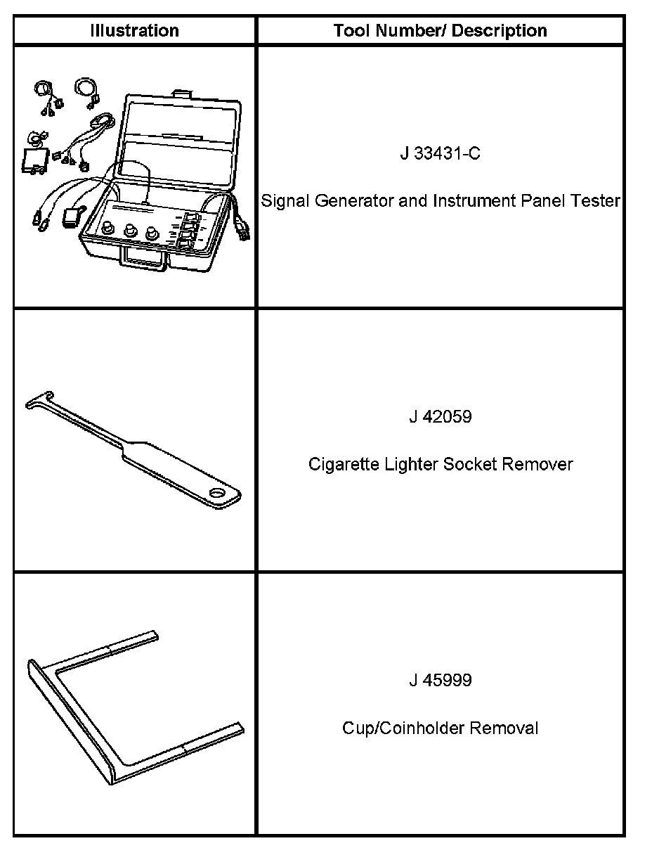 Instrument Panel, Gauges and Warning Indicators: Tools and Equipment