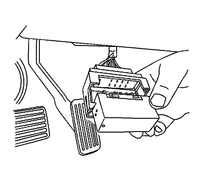 1. Release the tab (1) securing the flasher to the knee bolster.