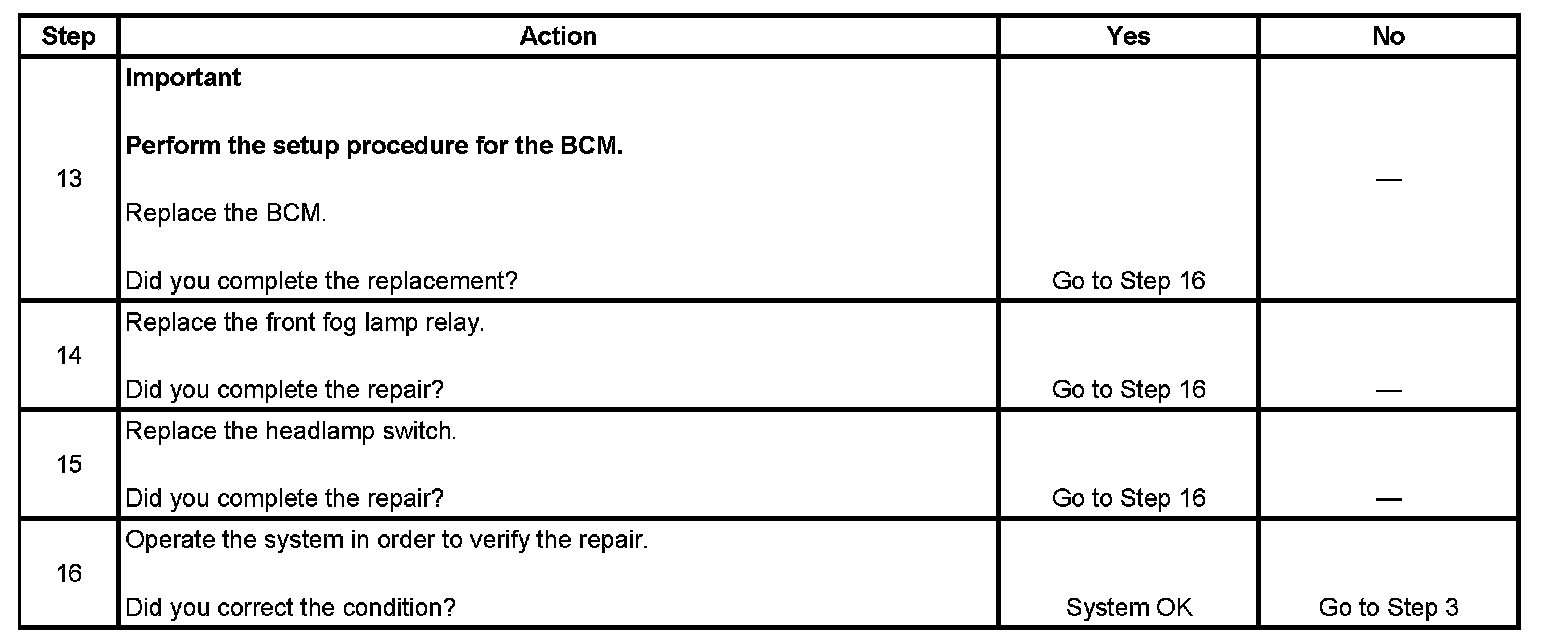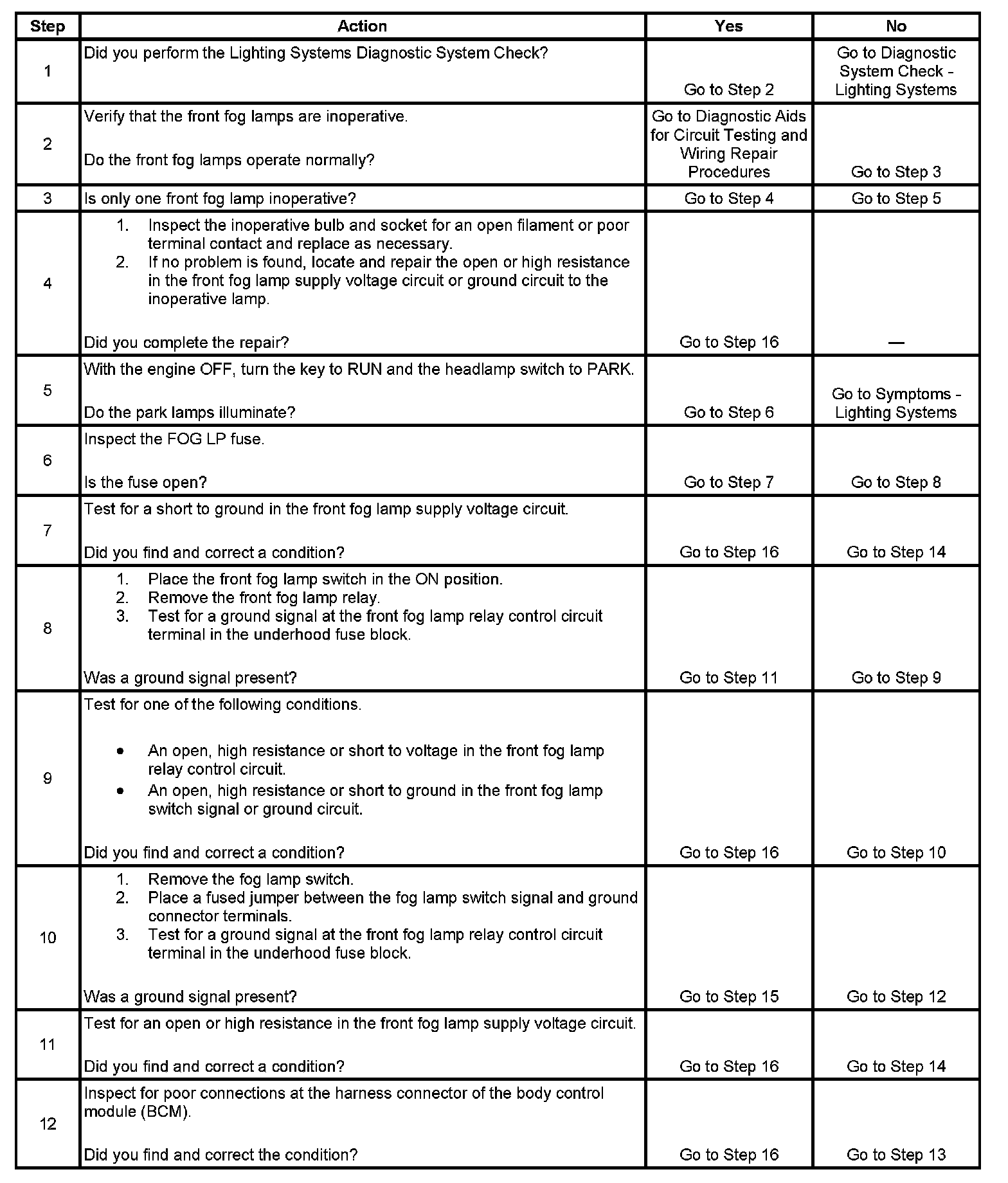Fog Lamps Inoperative