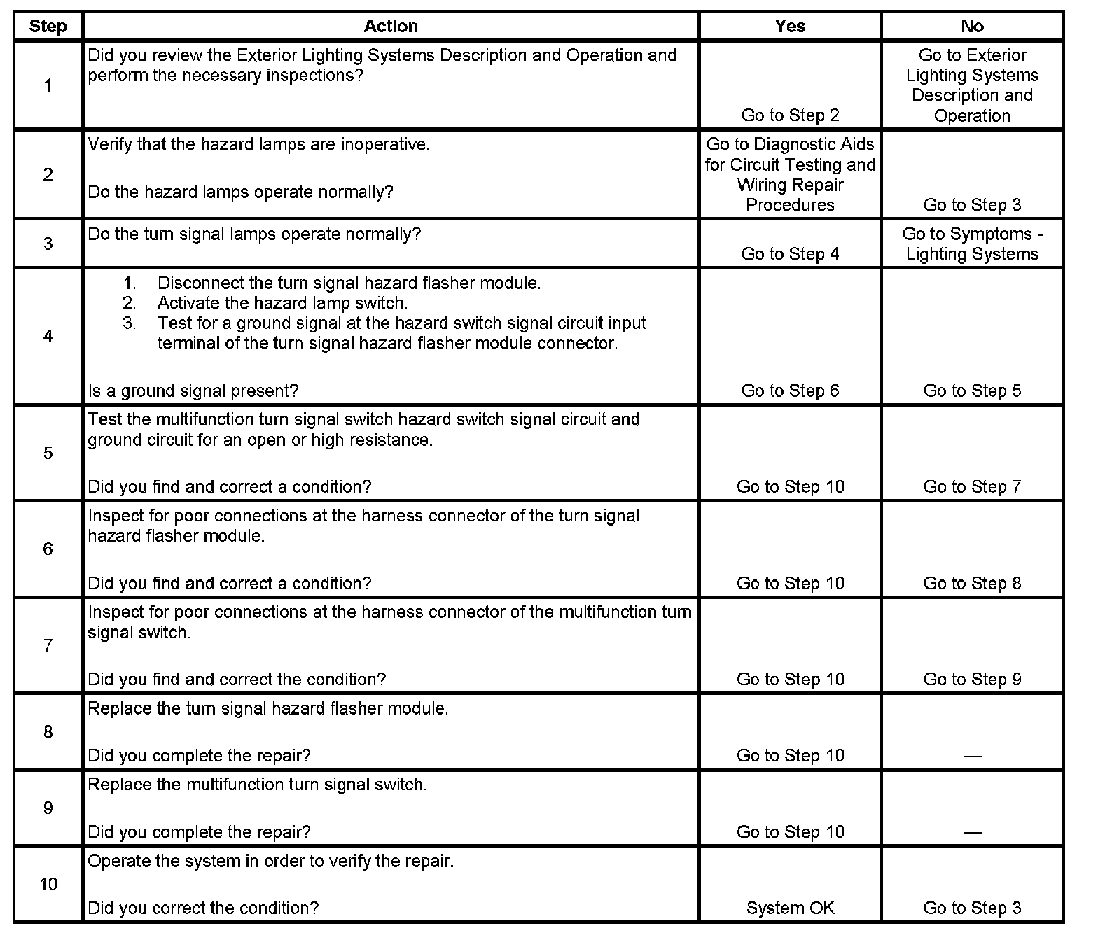 Hazard Lamps Inoperative