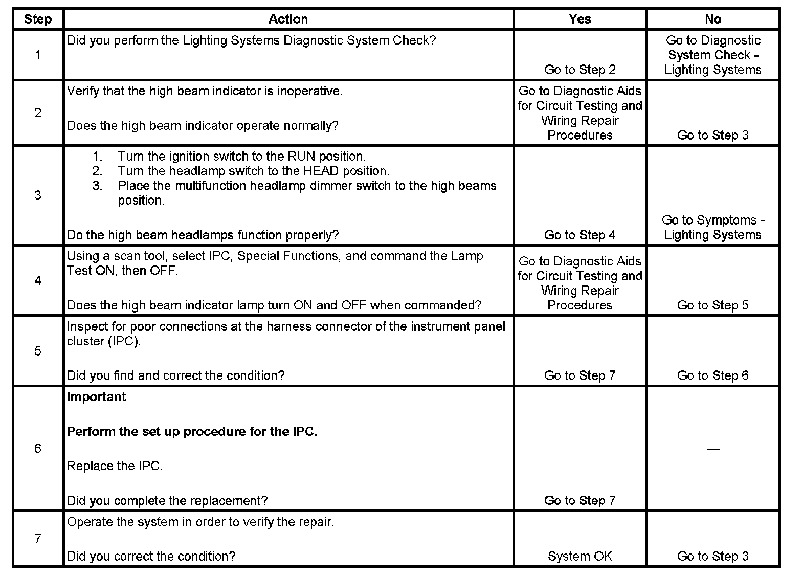 High Beam Indicator Inoperative