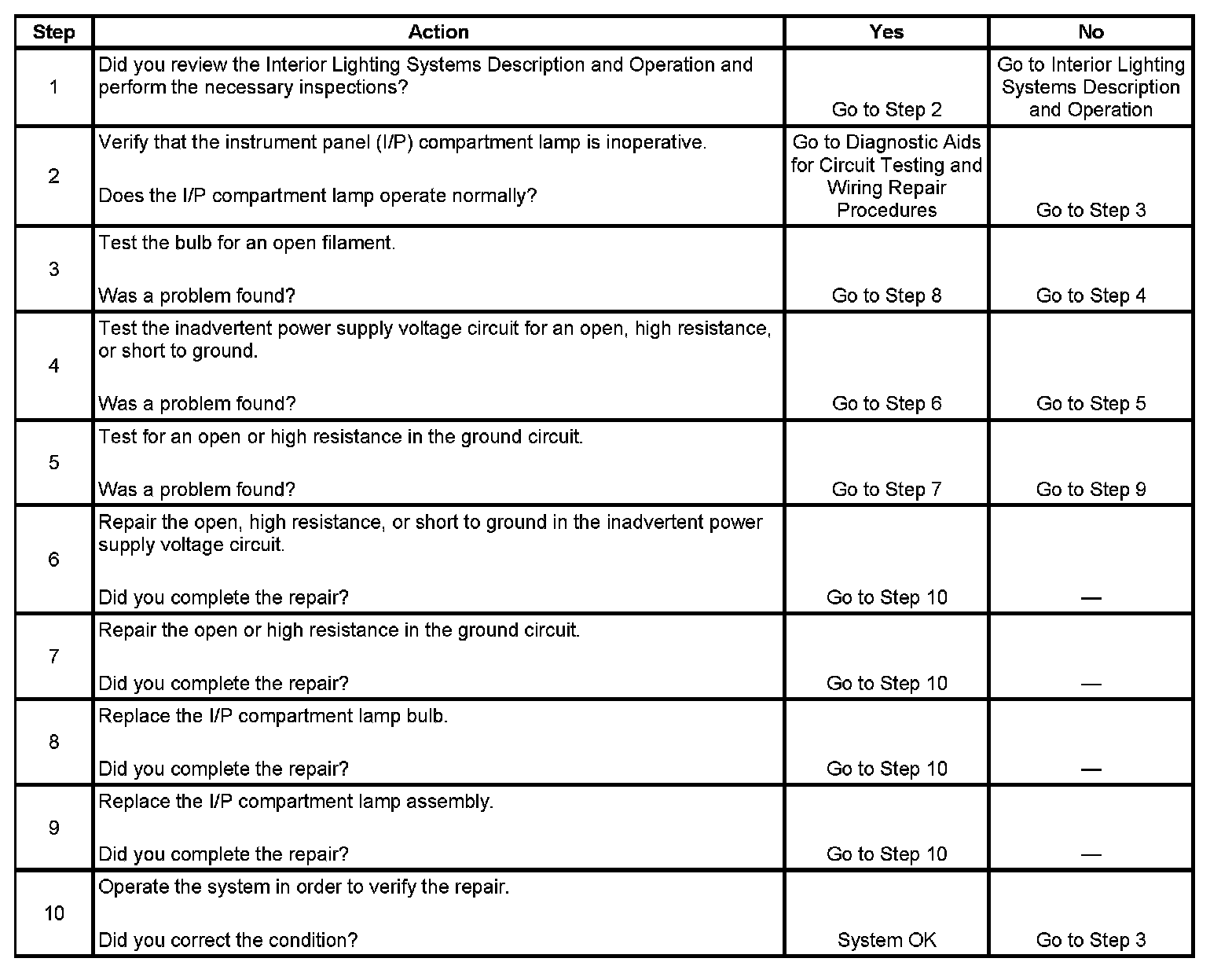 Instrument Panel (I/P) Compartment Lamp Inoperative