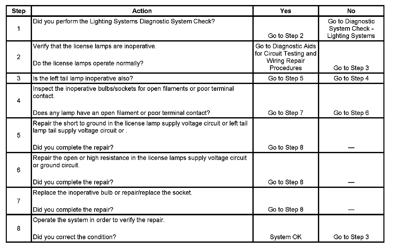 License Lamps Inoperative