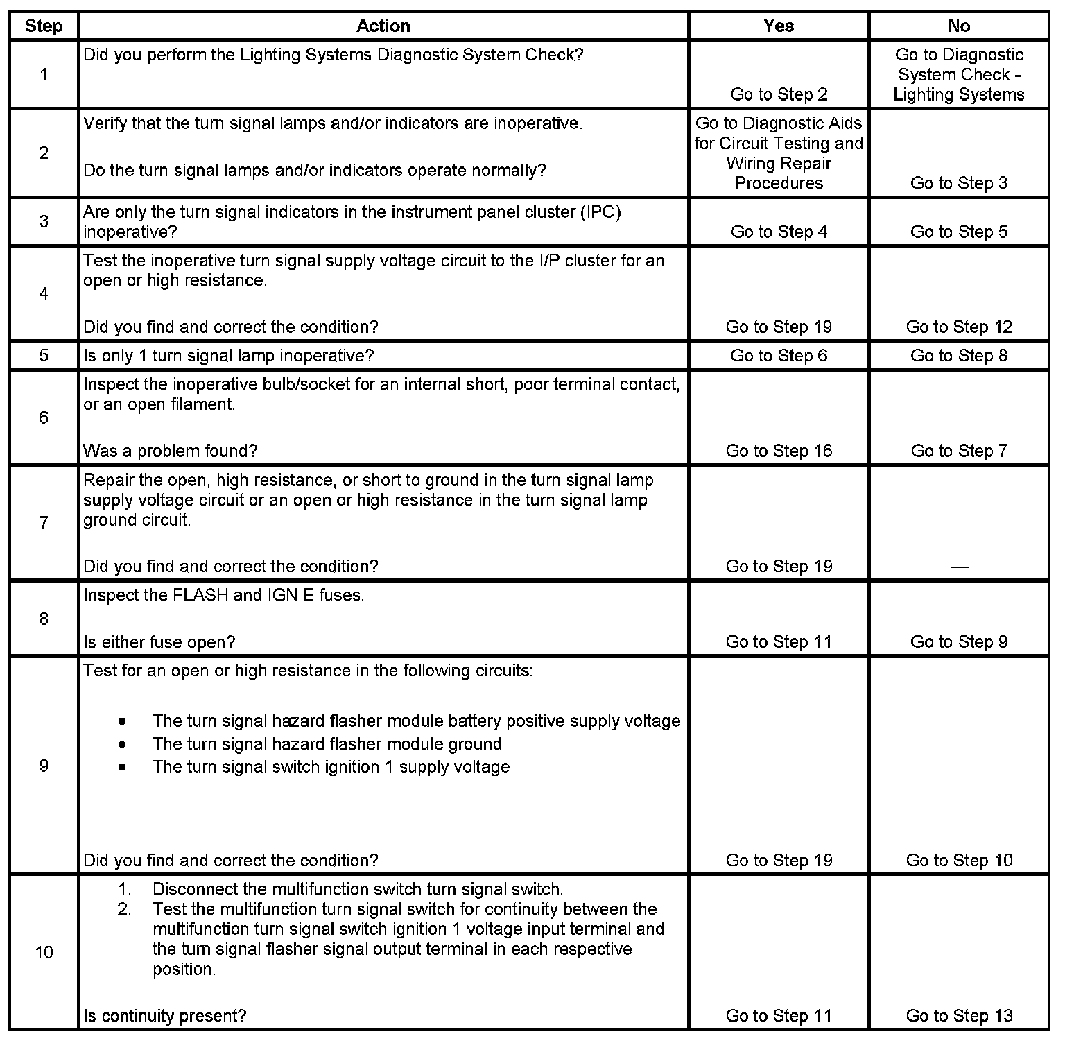 Turn Signal Lamps and/or Indicators Inoperative