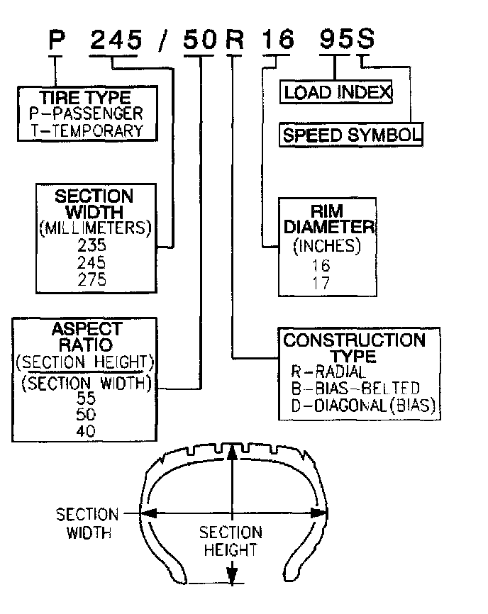 Most P-metric tire sizes do not have exact corresponding alphanumeric tire sizes. Replacement tires should be of the same Tire Performance Criteria (TPC) specification number including the same size, the same load range, and the same construction as those originally installed on the vehicle. Consult a tire dealer if you must replace the P-metric tire with other sizes. Tire companies can best recommend the closest match of alphanumeric to P-metric sizes within their own tire lines.
