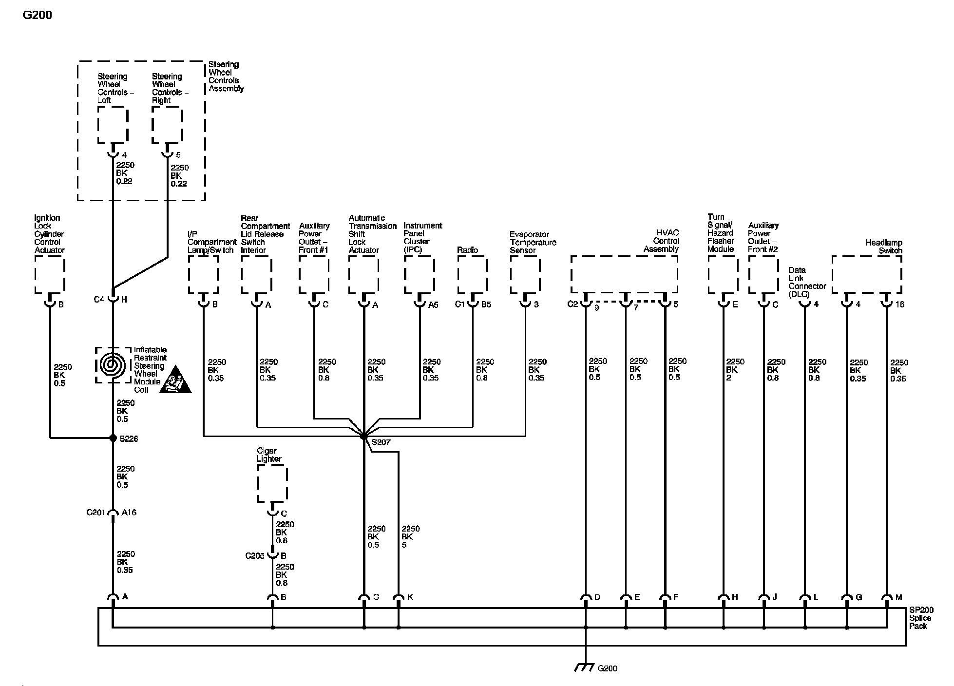 The locations for the Connectors, Grounds, Splices, and Grommets shown within these diagrams can be found via their numbers at Vehicle Locations.