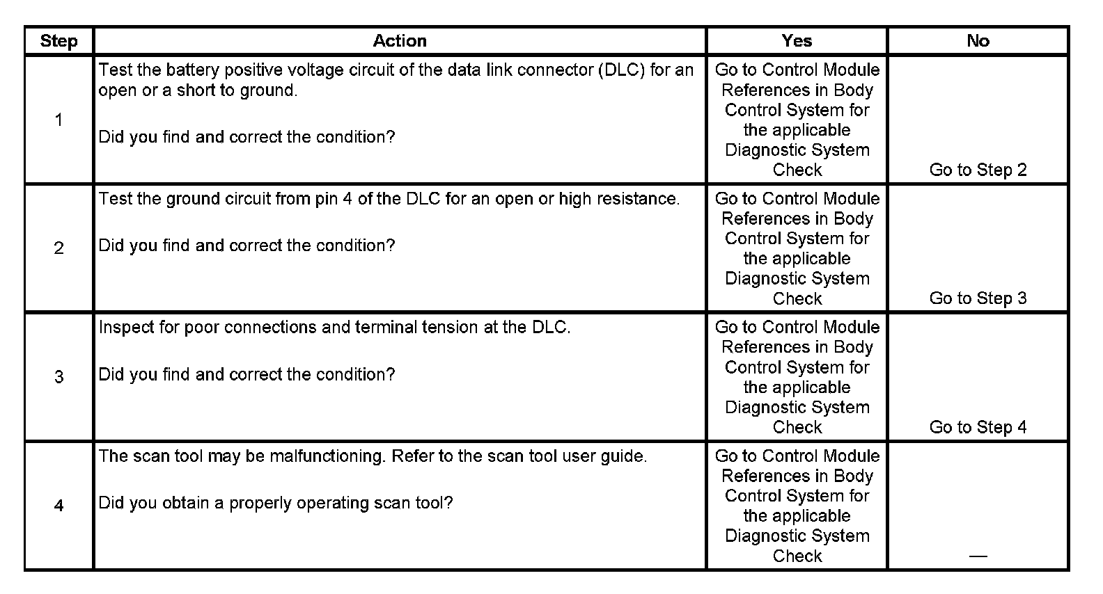 4. If the battery positive voltage and ground circuits of the DLC are functioning properly. The malfunction must be due to the scan tool.