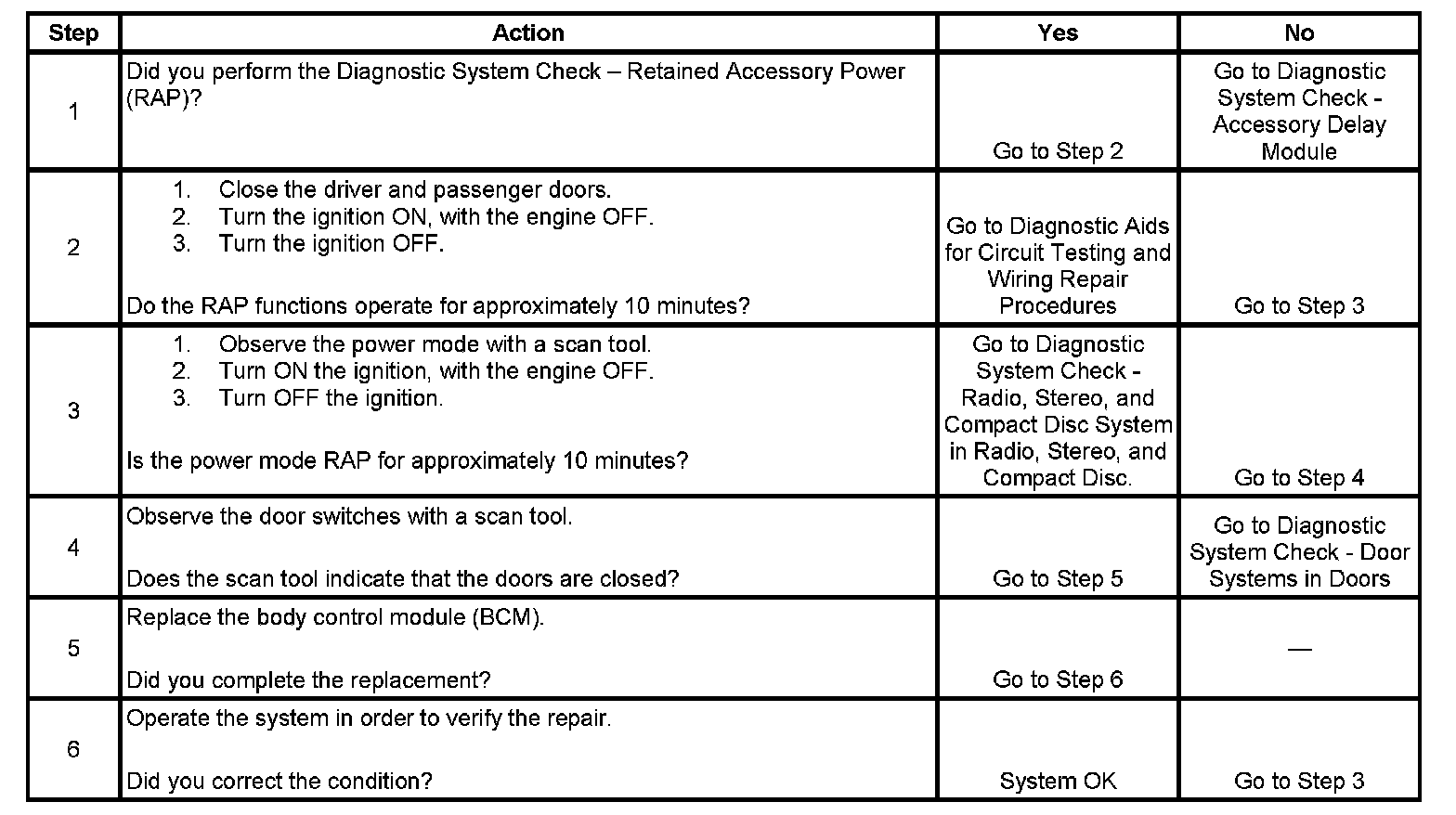 Retained Accessory Power (RAP) - Inoperative