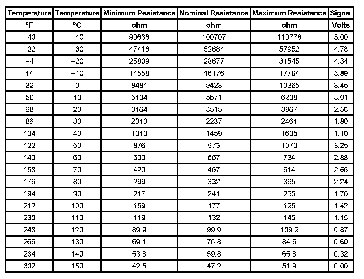 Transmission Fluid Temperature (TFT) Sensor Specifications: