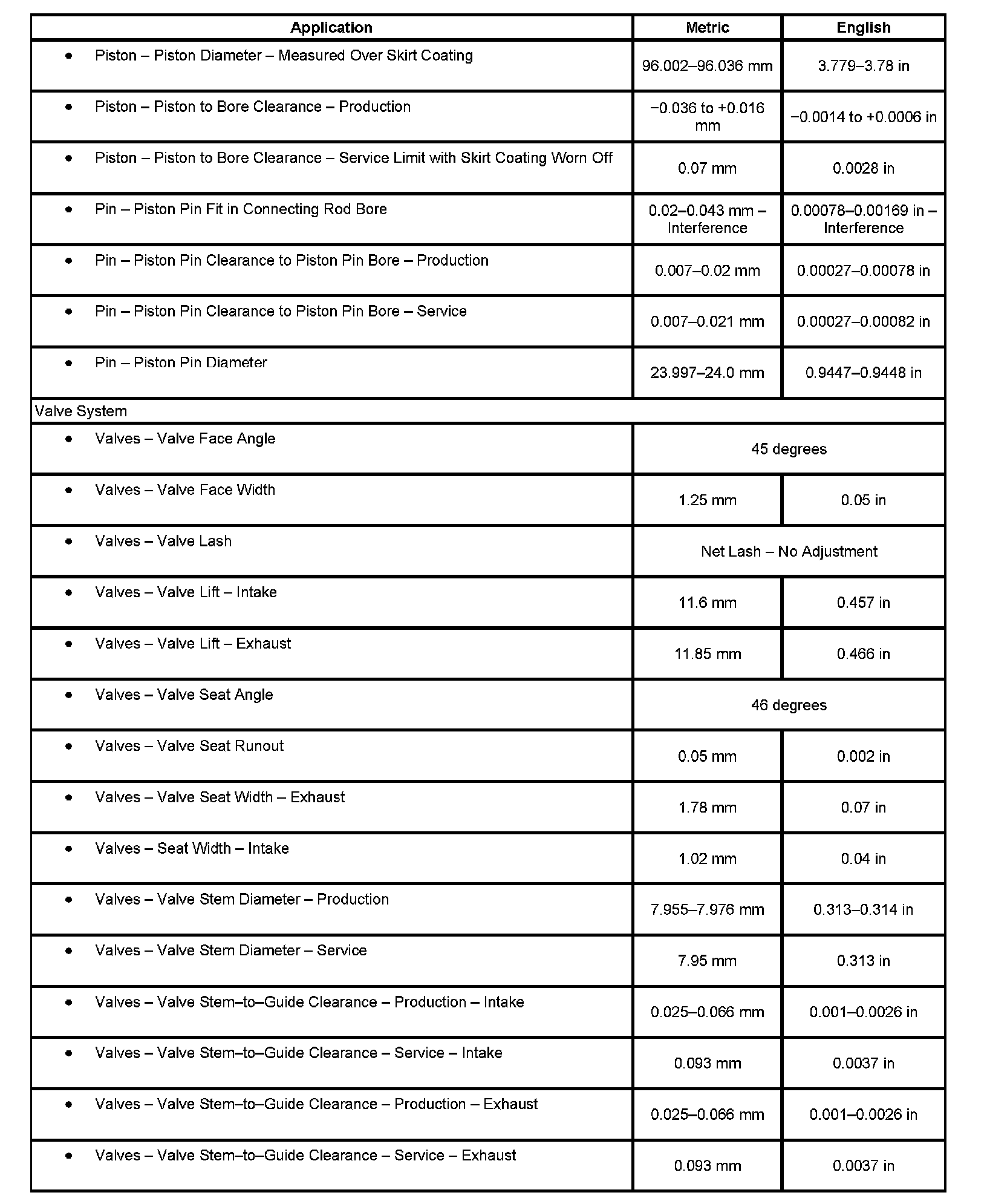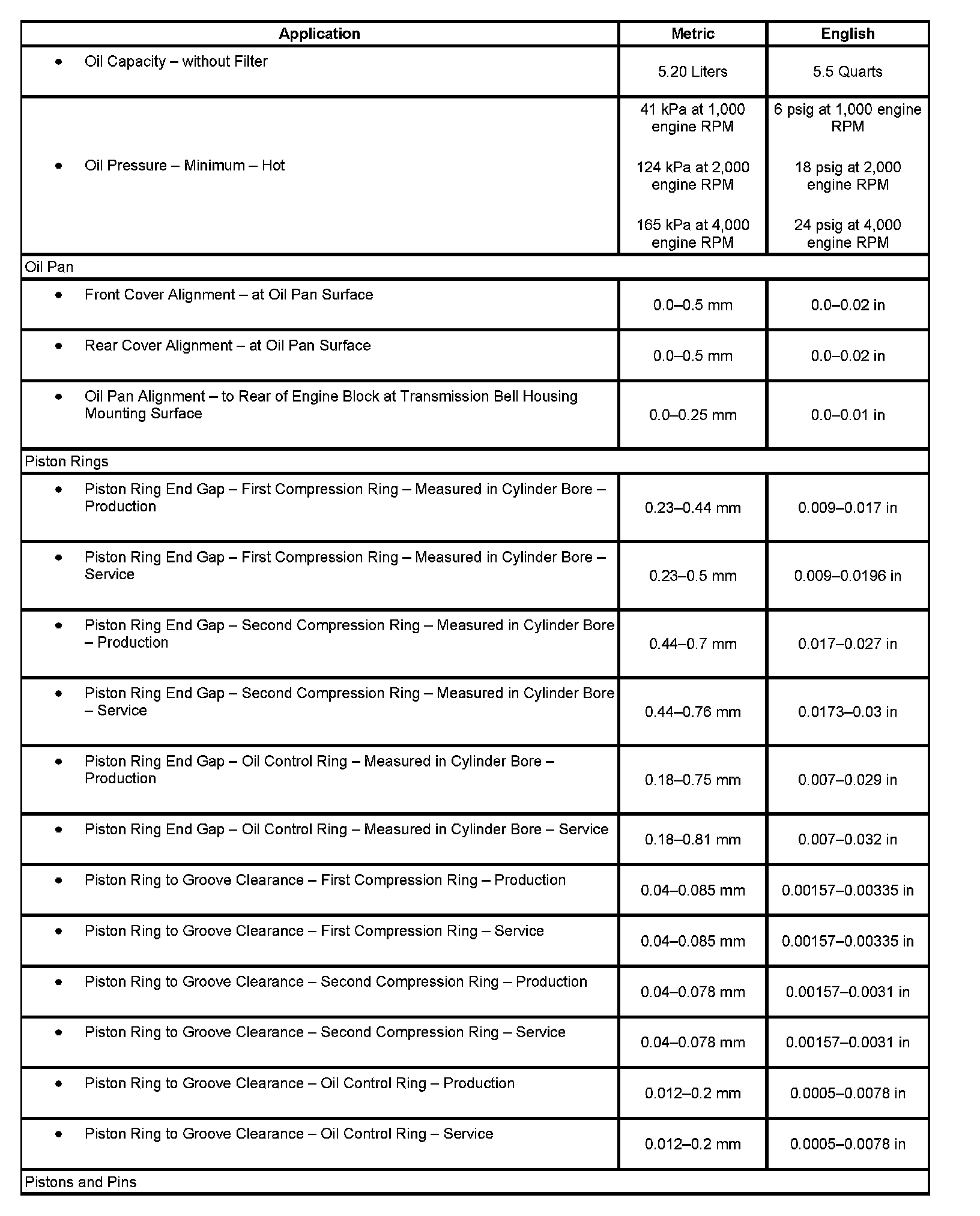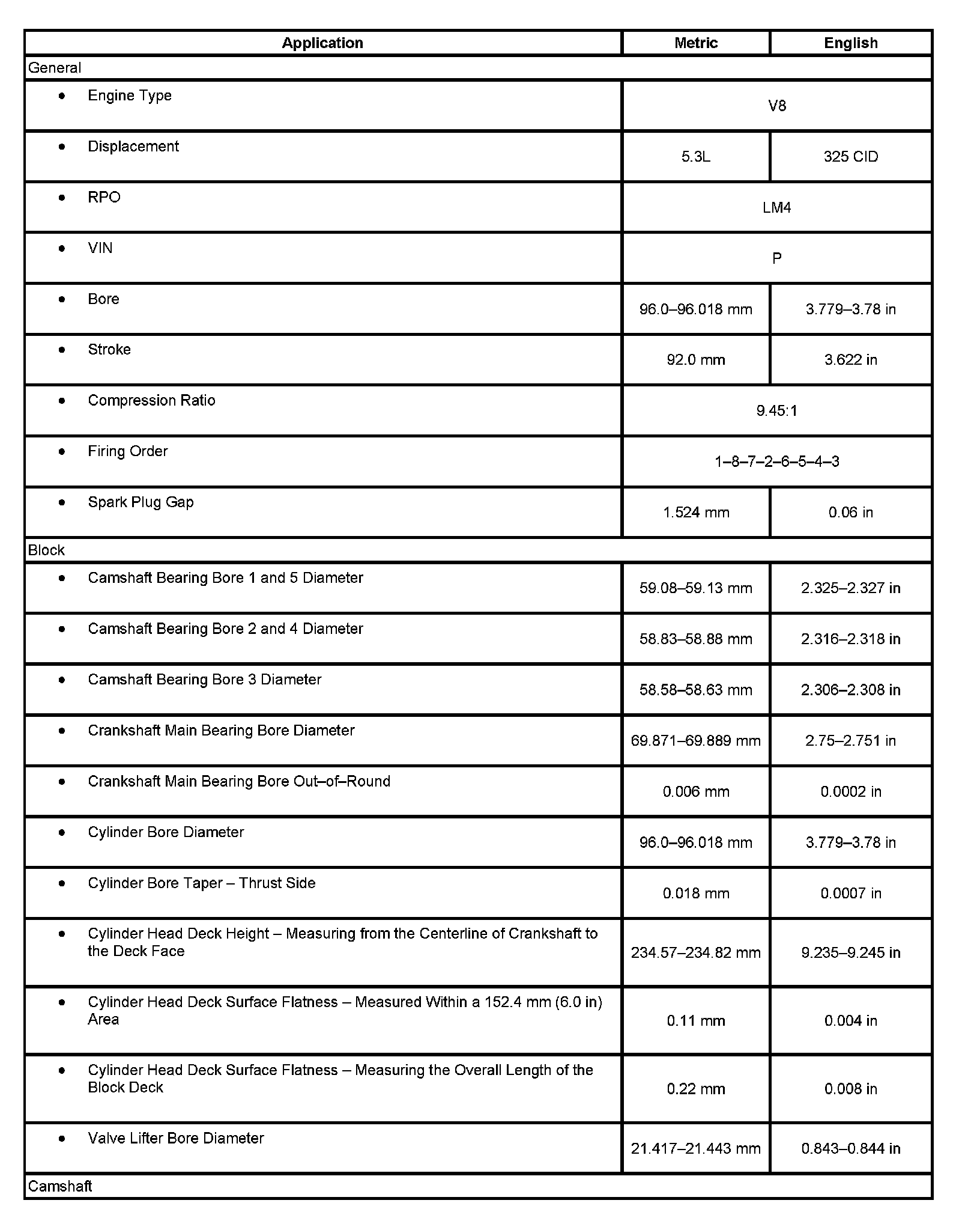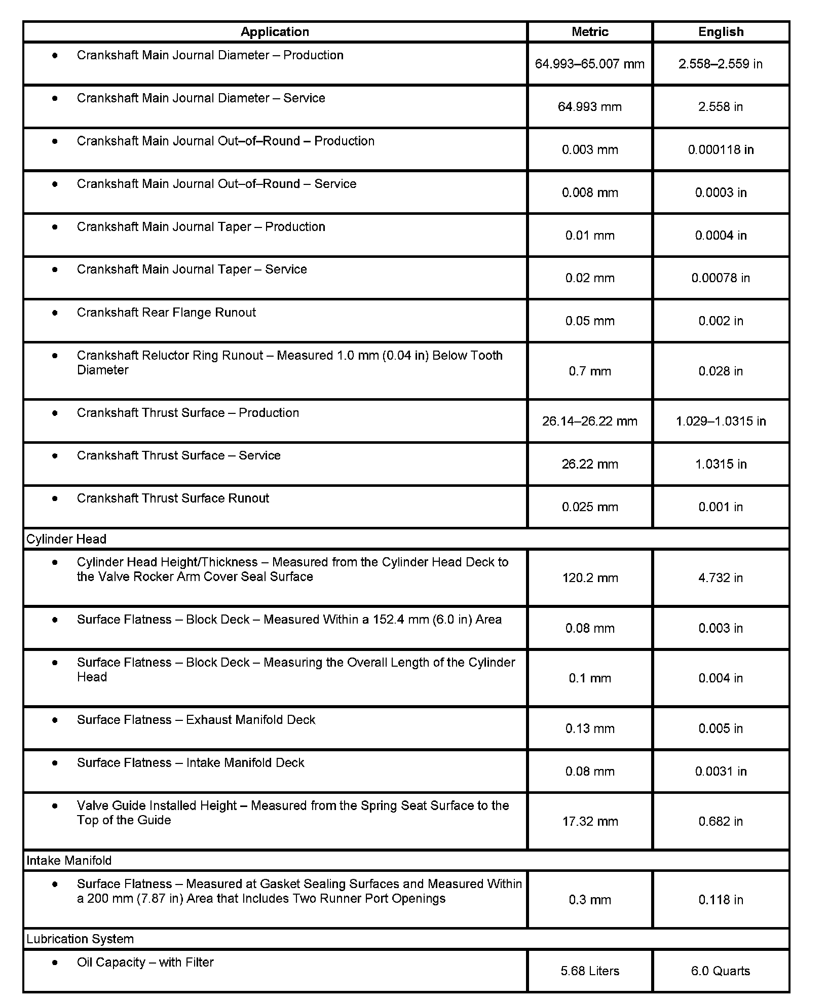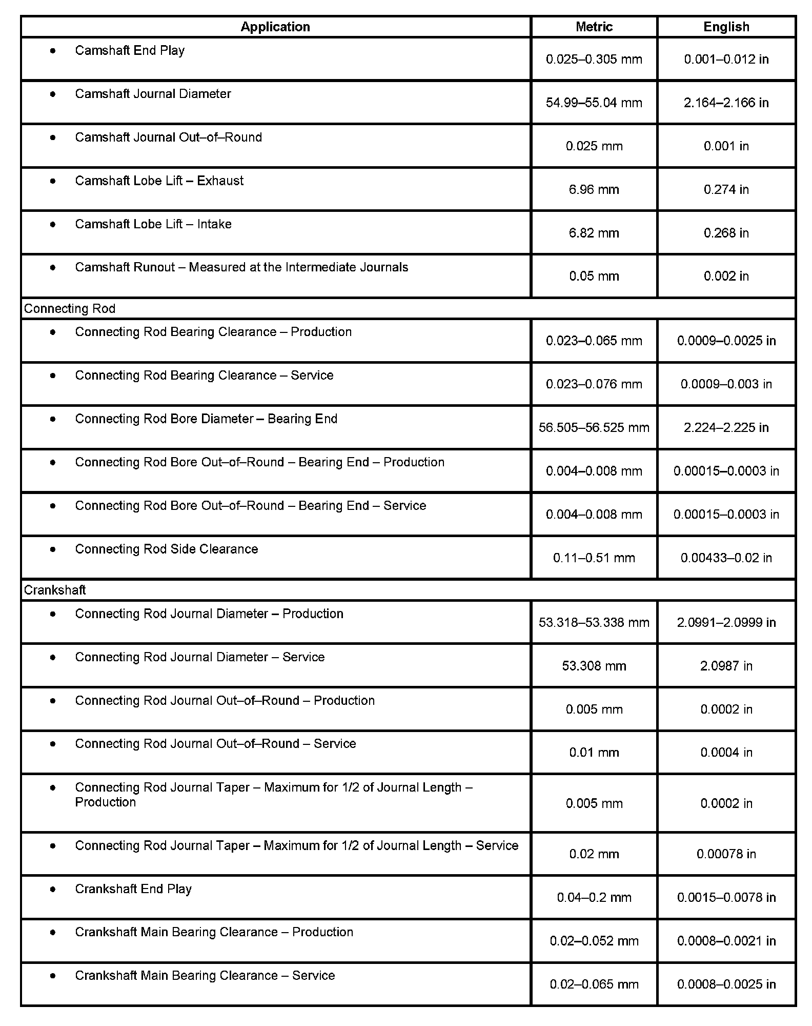 Engine Mechanical Specifications