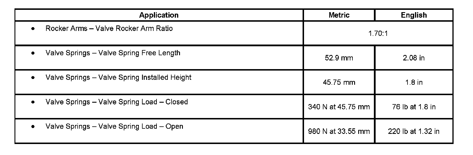 Engine Mechanical Specifications: