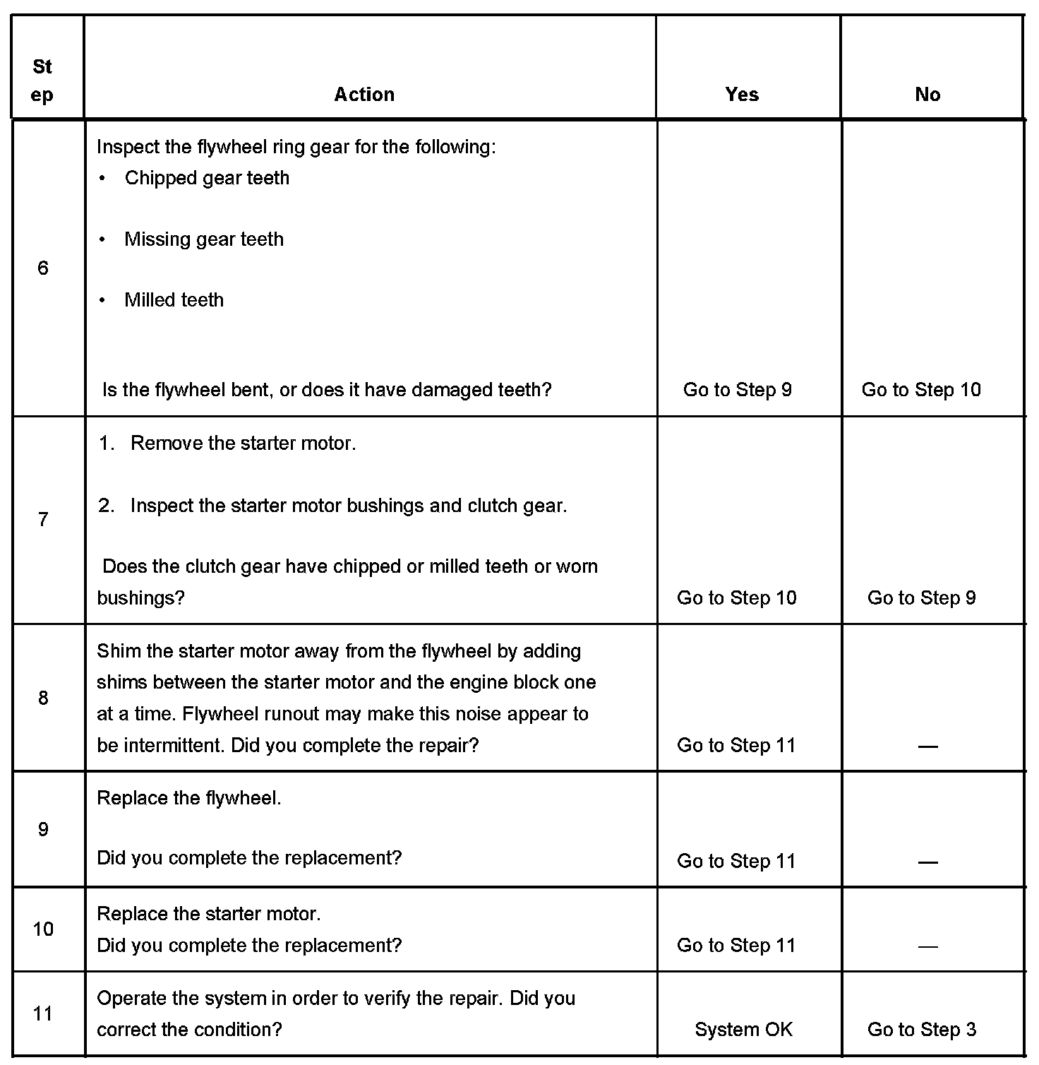 - Inspect the flywheel ring gear for damage or unusual wear.