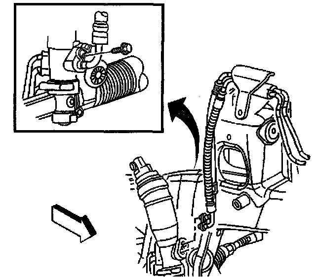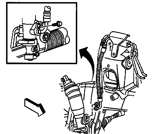 6. Install the power steering hose assembly to the power steering gear retaining bolt.
