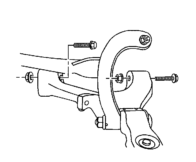 Important: Ensure that the lower control arm is parallel to the lower control arm bracket during the installation and tightening of the lower control arm mounting bolts and nuts. This will ensure correct alignment of the lower control arm bushings.
