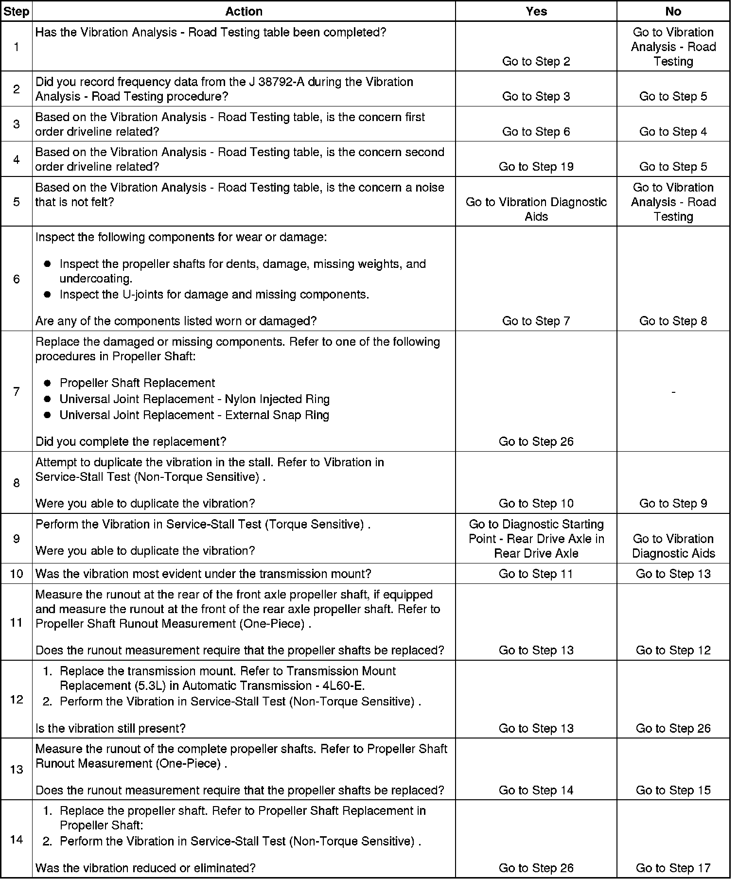9. First-order driveline related vibrations that could not be duplicated during the non-torque sensitive service stall test, could be caused by internal axle components. This test is designed to duplicated first-order driveline related vibrations that are sensitive to torque/load. A vibration concern may appear to be either less severe or more severe when duplicated in a service stall, than when duplicated on the road.