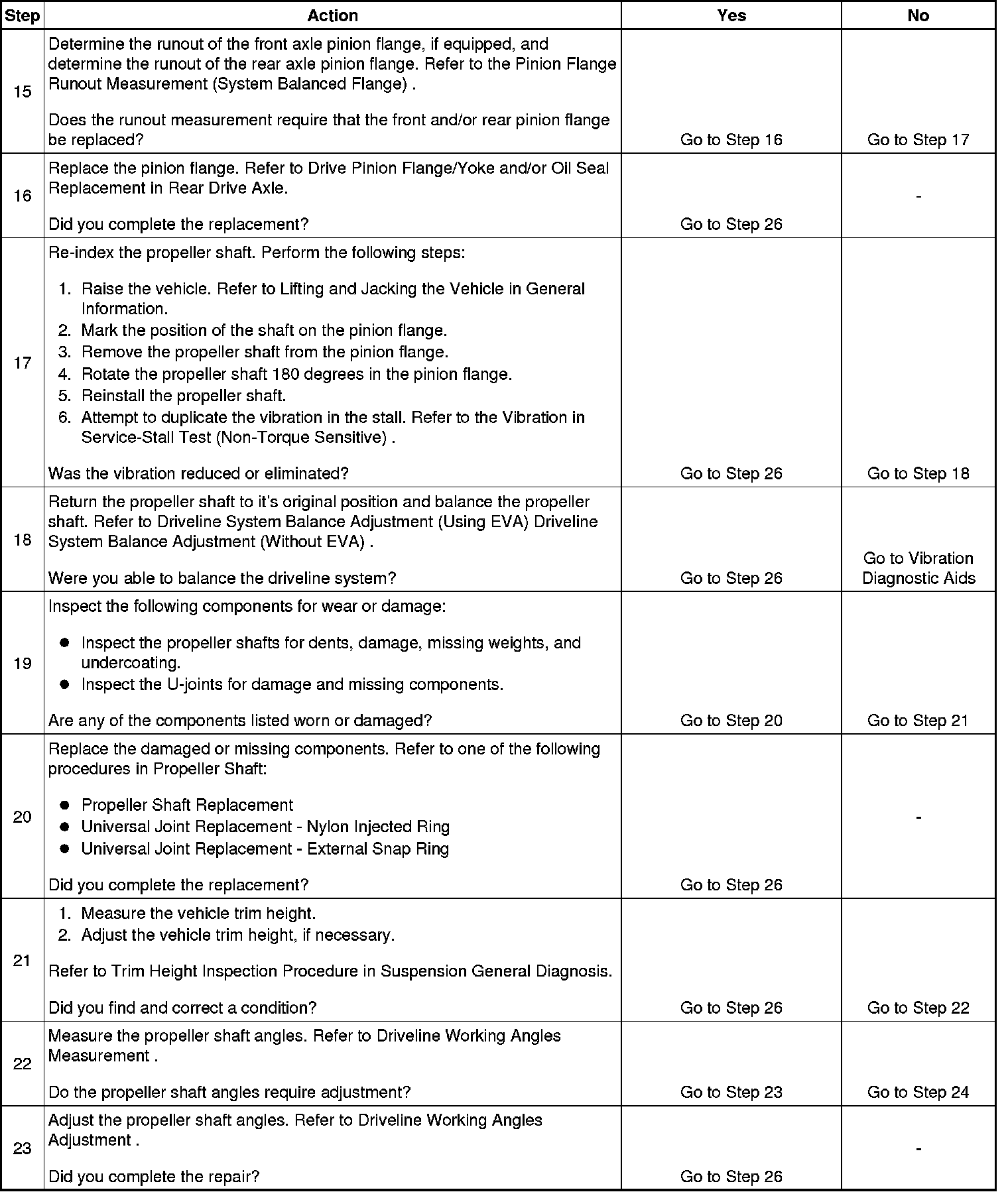15. First-order driveline vibrations can be caused by excessive runout of the pinion flange. If a propeller shaft exhibits excessive runout at a pinion flange end only, the runout may actually be caused by the pinion flange.