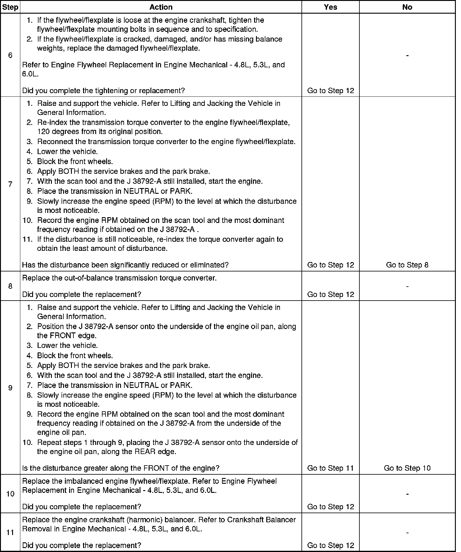 7. Re-indexing the transmission torque converter to the engine flywheel/flexplate alters the balance relationship between the torque converter and the rear of the engine.