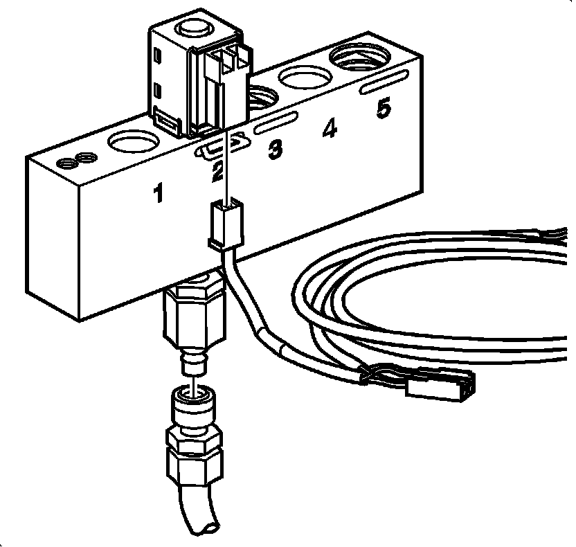 Observe the air flow through the solenoid. The flow will completely or nearly completely stop. Replace the solenoid if there continues to be an obvious air leak when the solenoid is energized.