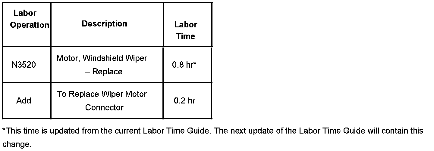 This condition may be due to water entering the wiper motor connector body through the weather pack seal, resulting in corrosion of the terminals within that connector.