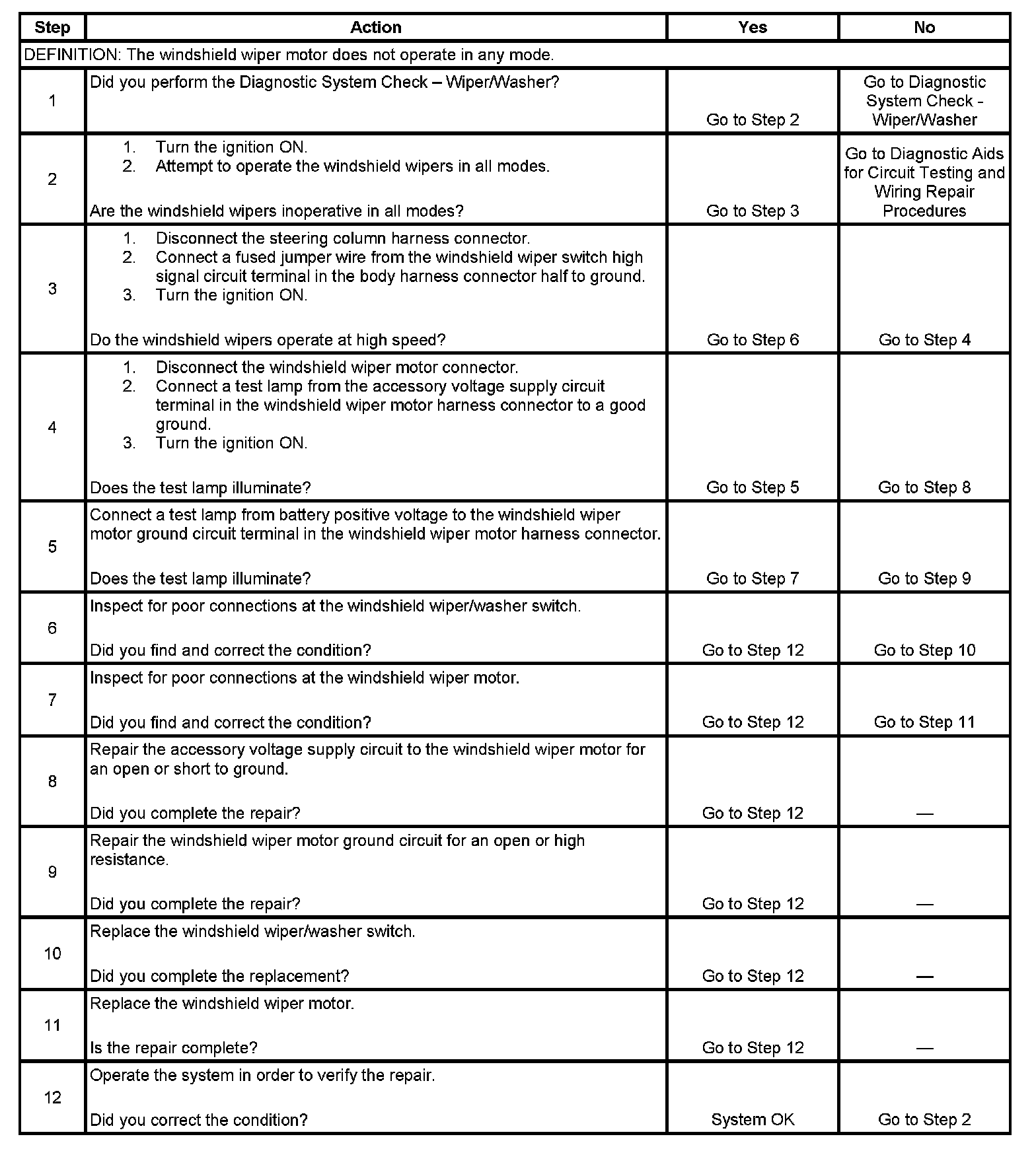 Wipers Inoperative - All Modes