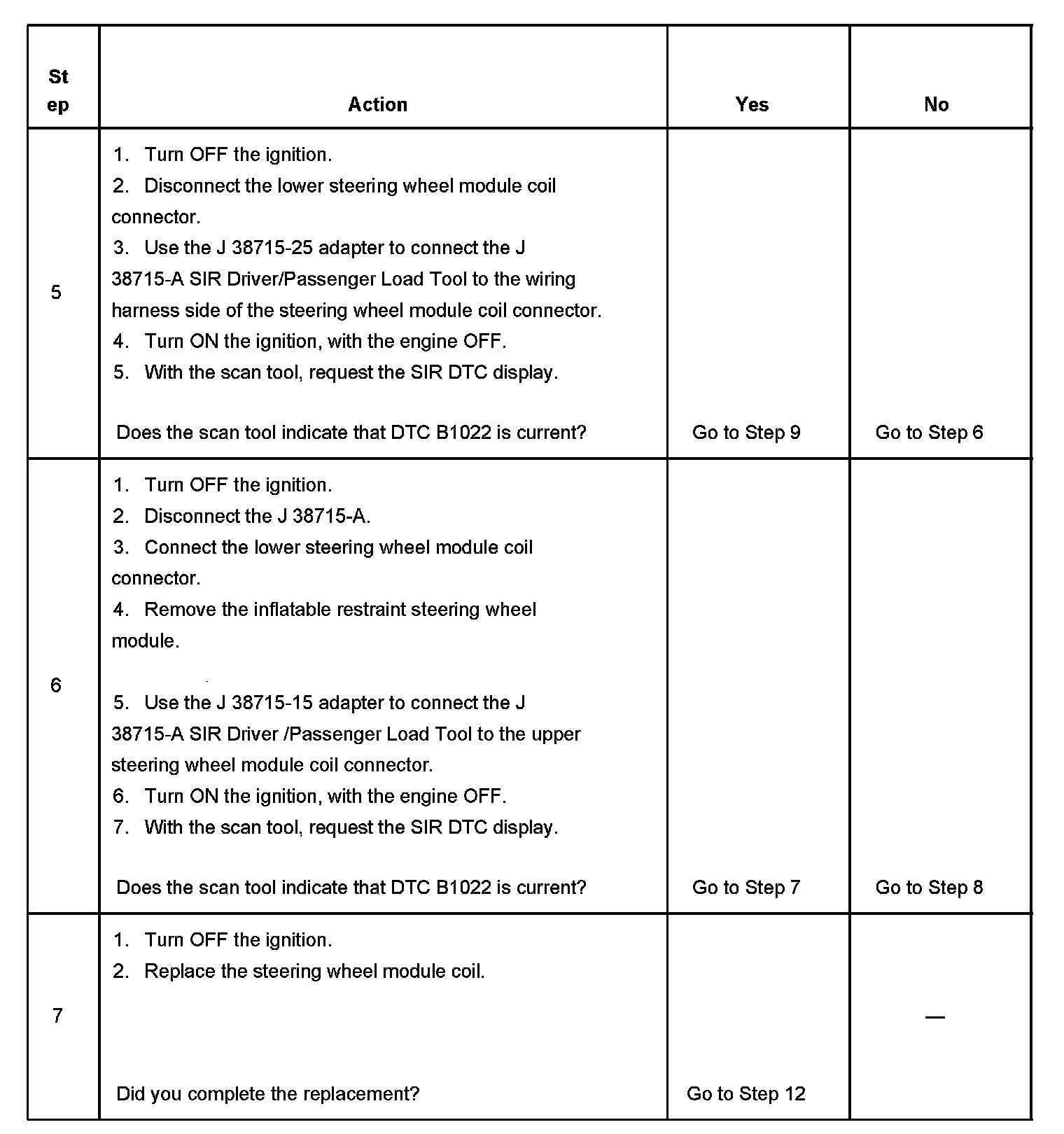 5. Tests to see if the malfunction is caused by either the inflatable restraint steering wheel module or steering wheel module coil.
