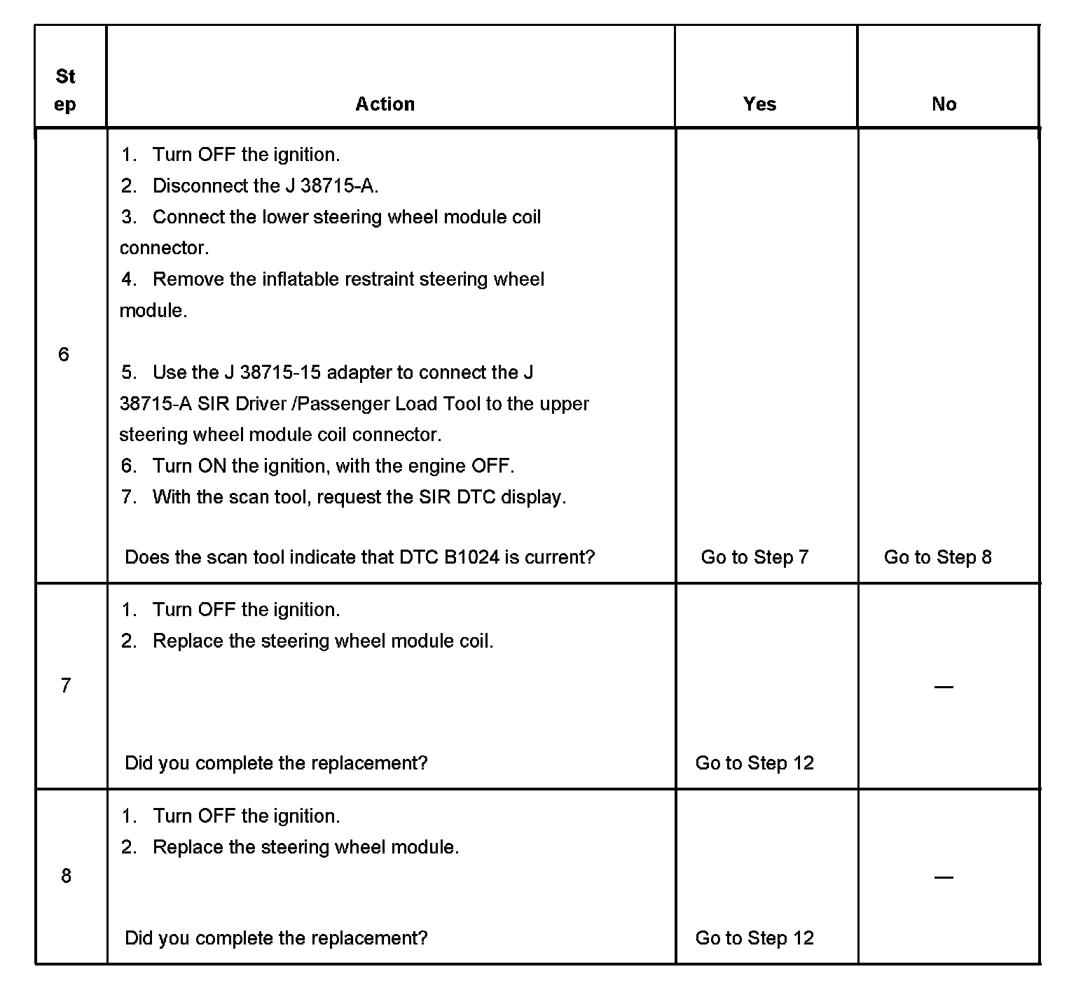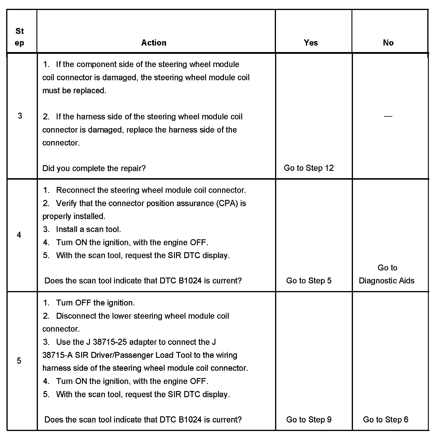 5. Tests to see if the malfunction is caused by either the inflatable restraint steering wheel module or steering wheel module coil.