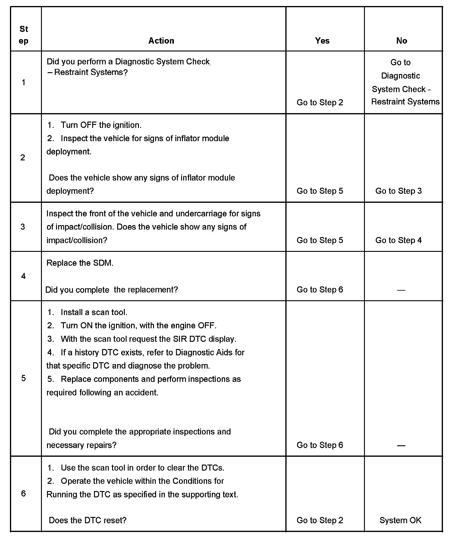 2. This step checks for evidence of inflator module deployment. If no evidence of inflator module deployment exists, DTC B1053 may have set falsely.