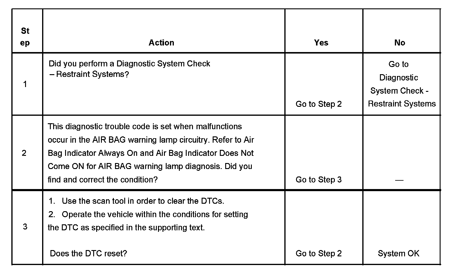 Refer to Air Bag Indicator Always On and Air Bag Indicator Does Not Come ON in order to diagnose warning indicator circuit malfunctions. AIR BAG Indicator Always On AIR BAG Indicator Does Not Come ON