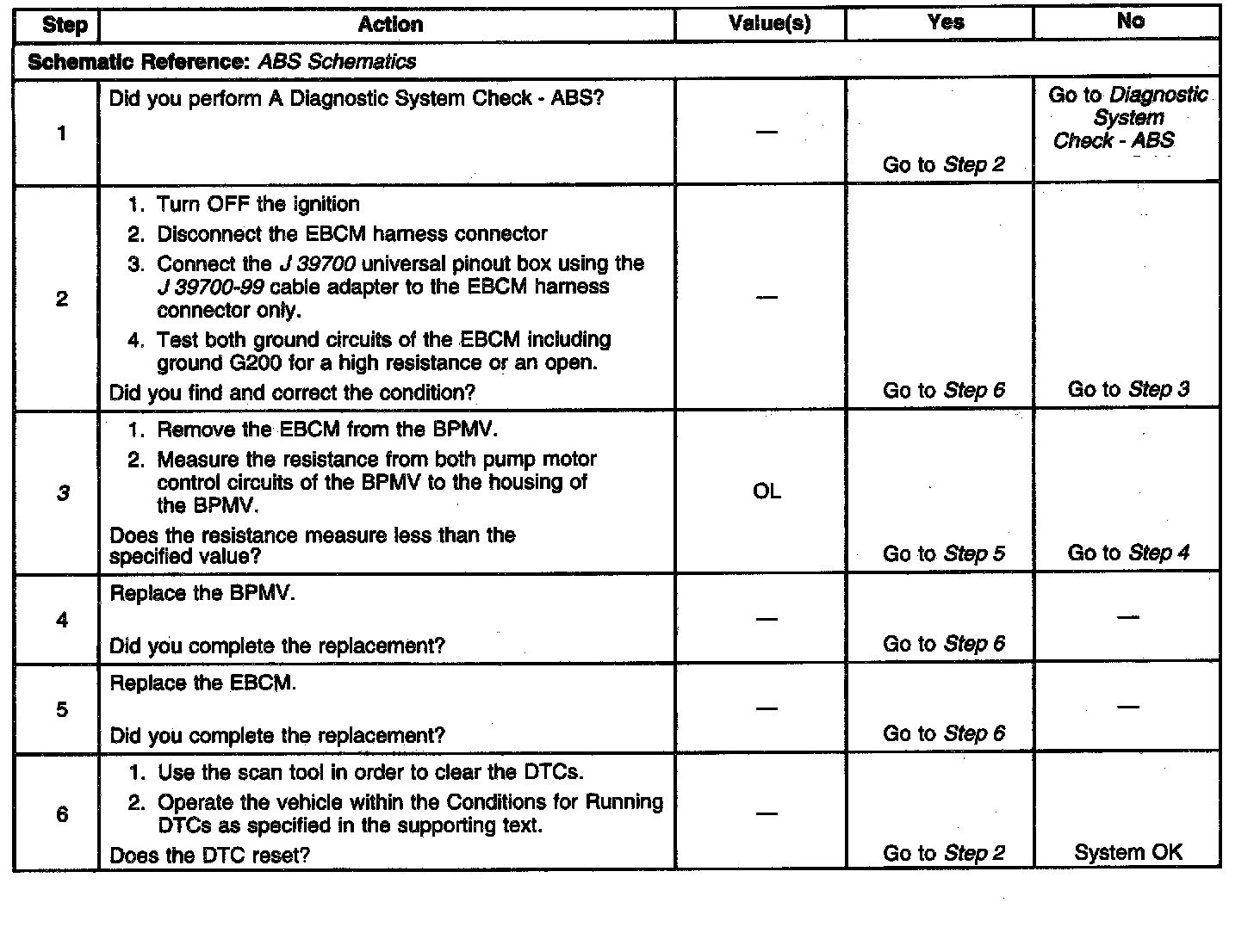 3. This step tests the pump motor circuits of the BPMV for a short to the housing of the BPMV. The wiring through the BPMV should not be repaired.