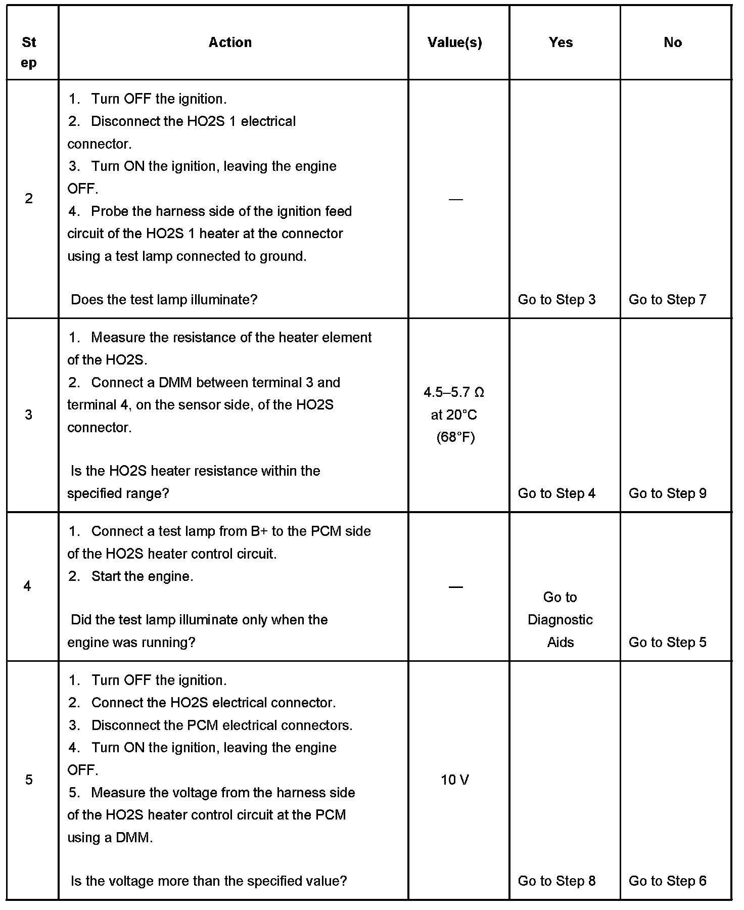 - The voltage potential between the HO2S 1 heater power and control circuits is greater than 13.99 volts when the PCM commands the heater ON.