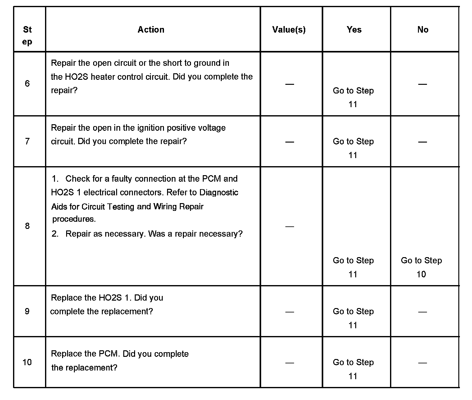 The numbers below refer to the step numbers in the diagnostic table.