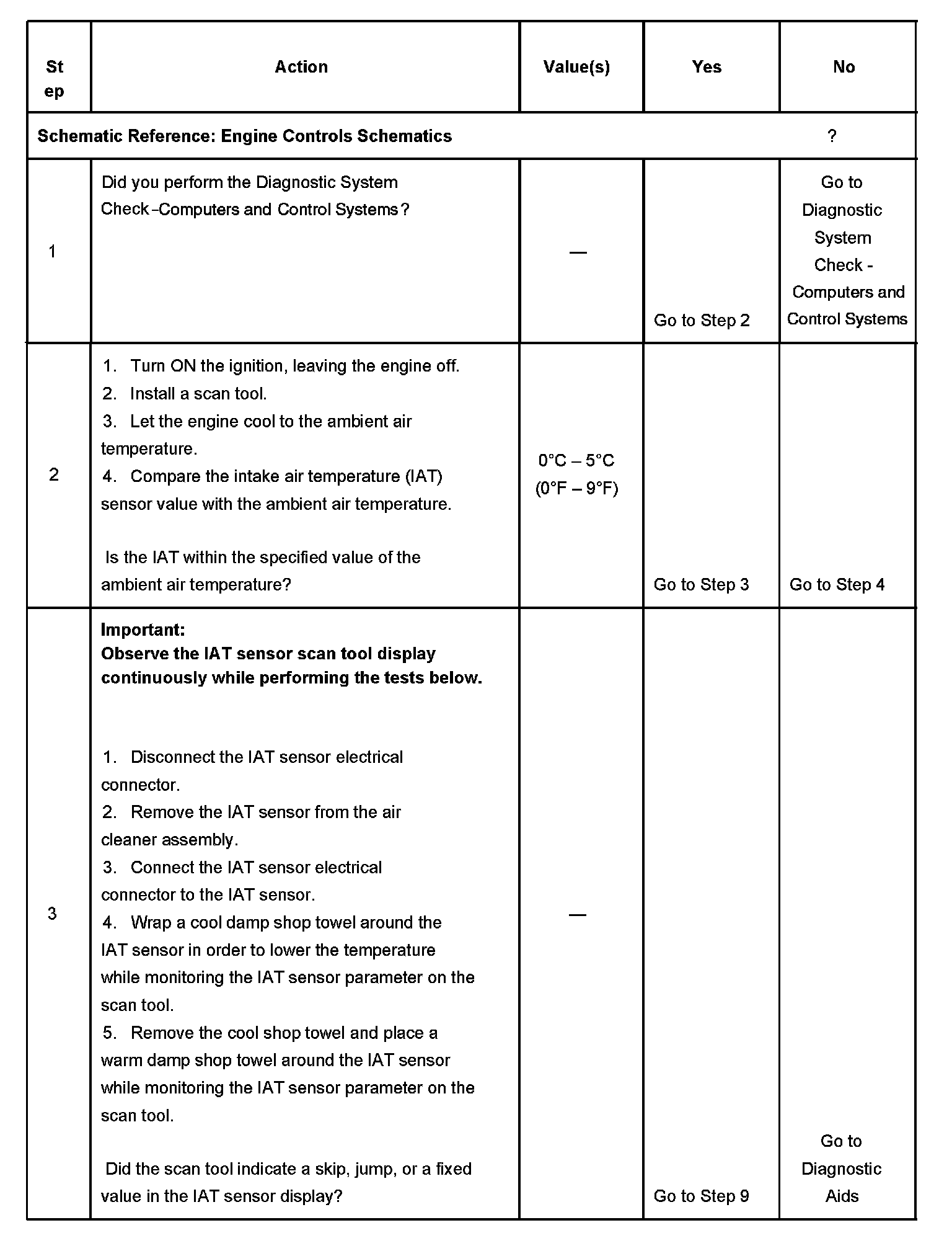 3. This step checks for a faulty intake air temperature (IAT) sensor.